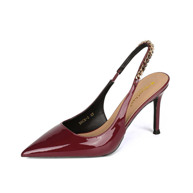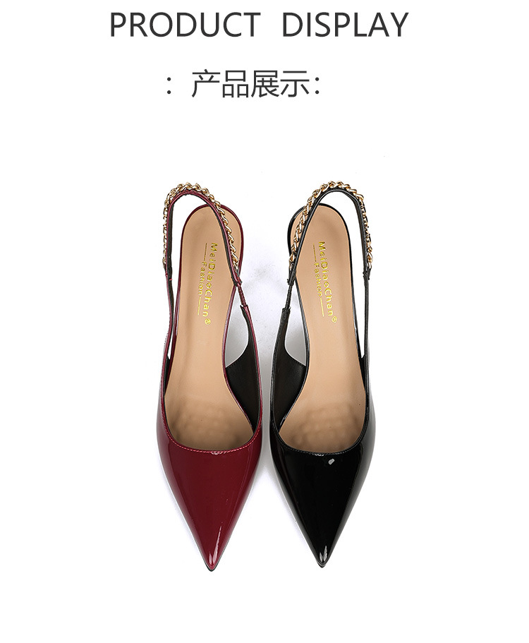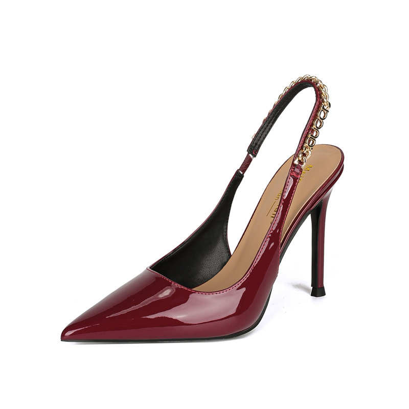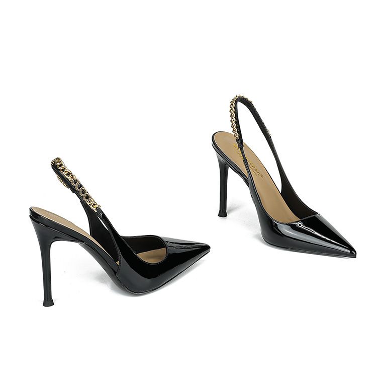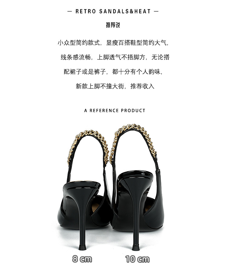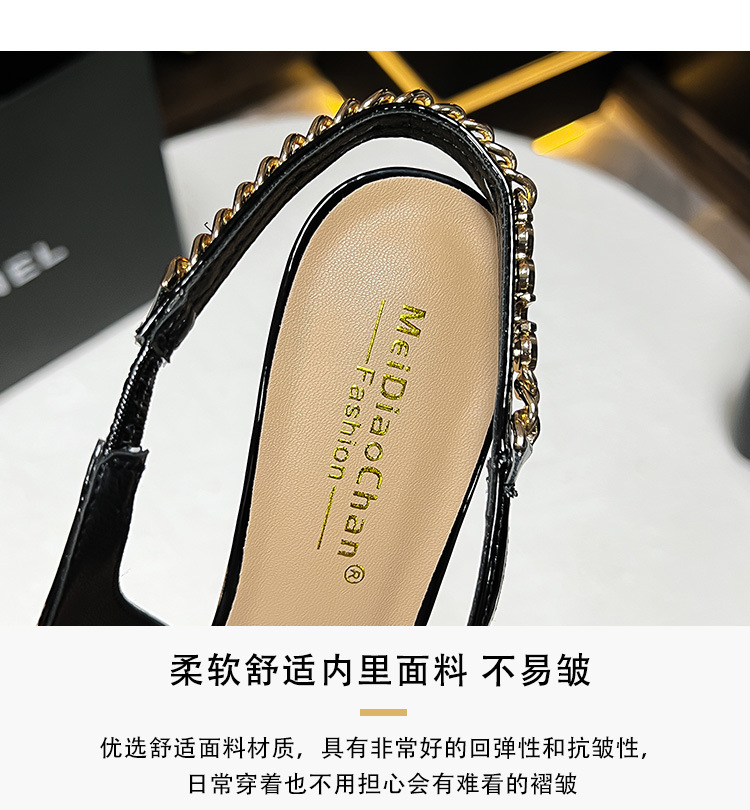 Stirle Heel Sandals with Chain Women's Summer Elegant Show Pointed Shallow Elegant Sexy High grade All-match