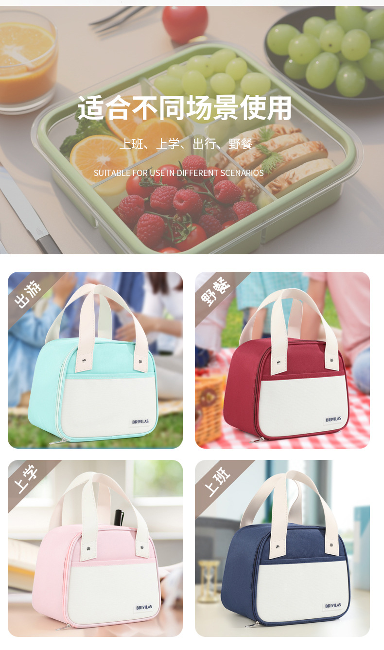 새로운 도파민 컬러 매칭 도시락 가방 휴대용 도시락 가방 사다리꼴 단열 가방 도시락 가방 작업 통근 가방 점심
