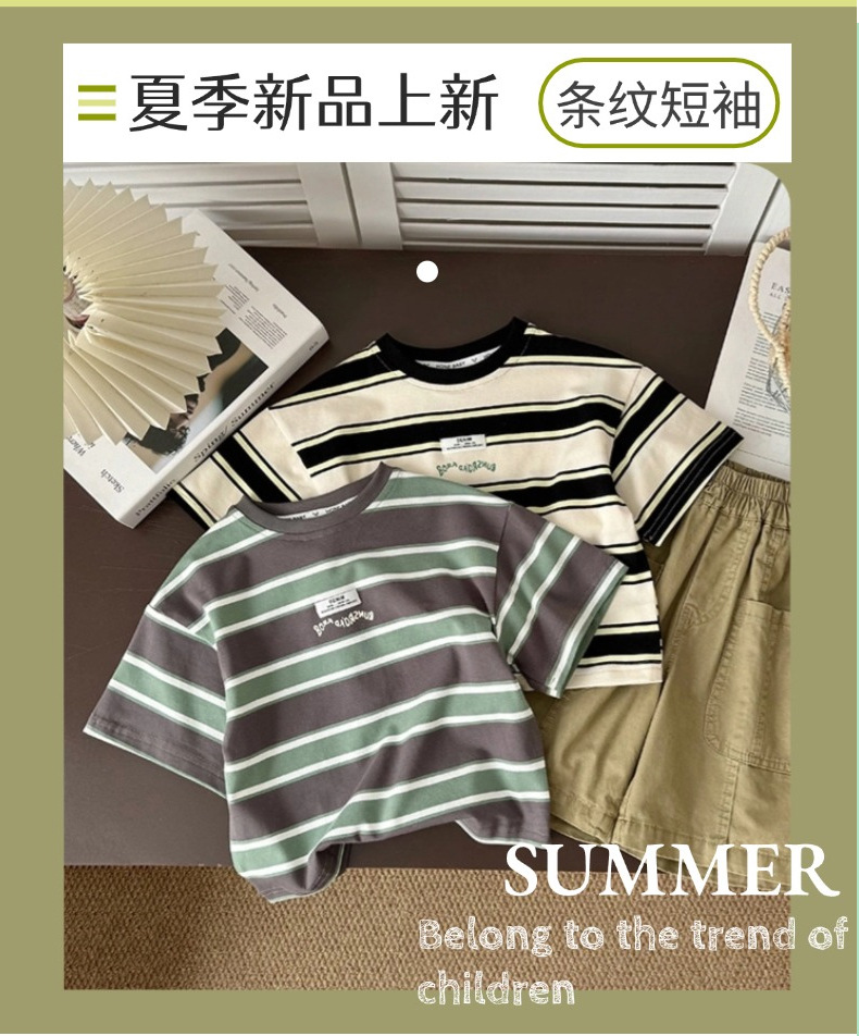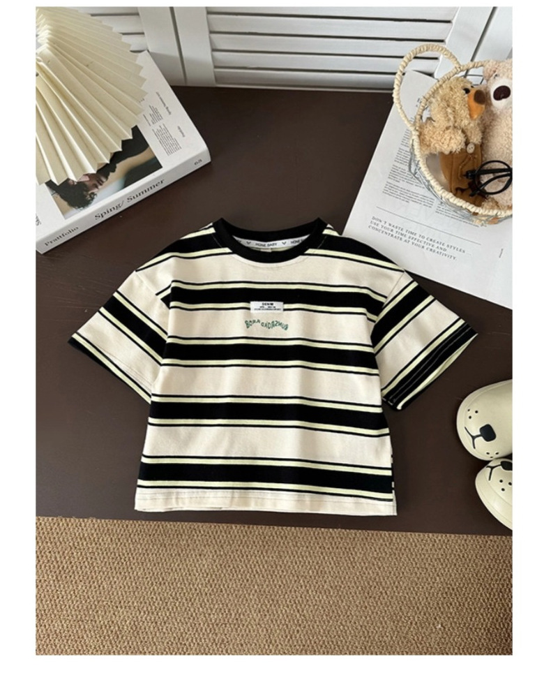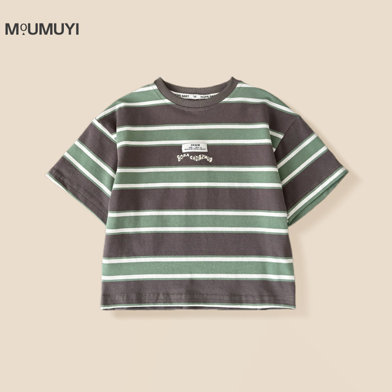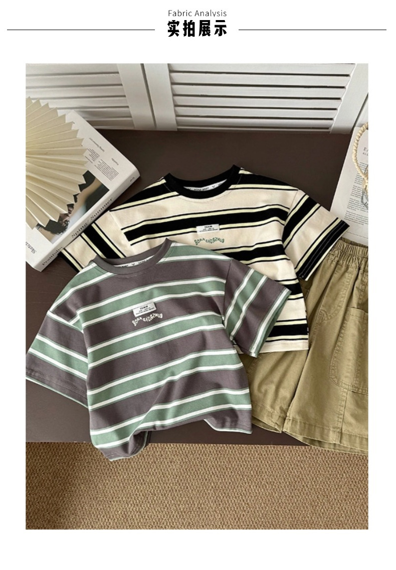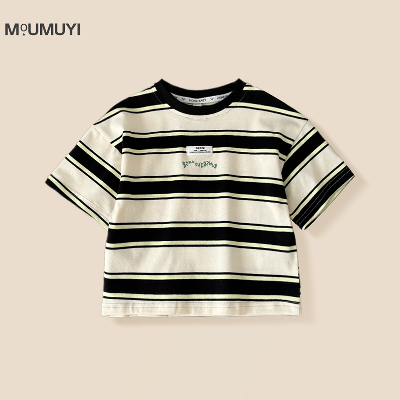 소년 반팔 티셔츠 아기 줄무늬 톱 2025 여름 새 어린이 반소매 면베이스 셔츠 패션스토어 가기