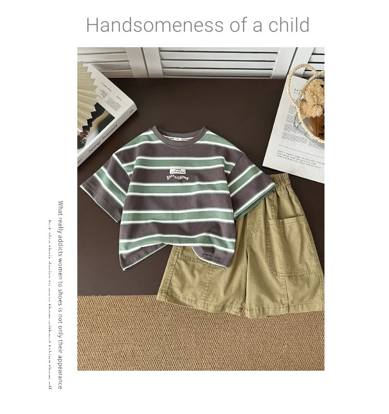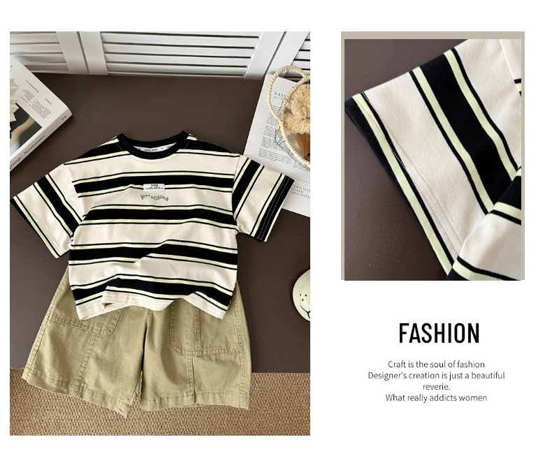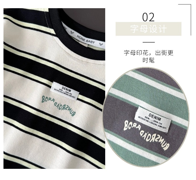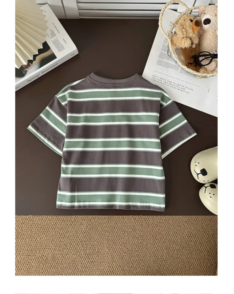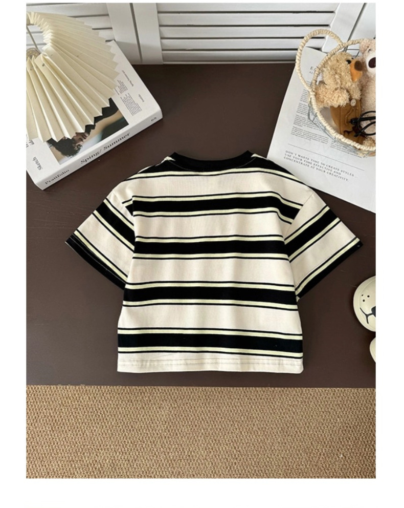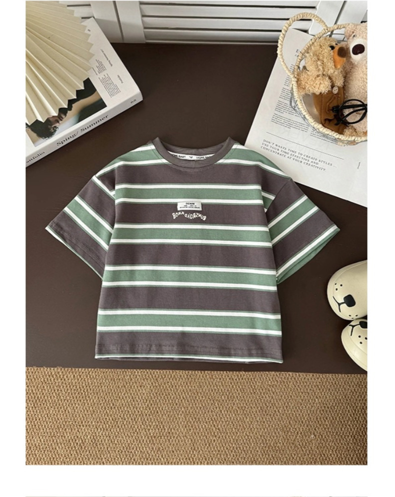 소년 반팔 티셔츠 아기 줄무늬 톱 2025 여름 새 어린이 반소매 면베이스 셔츠 패션스토어 가기