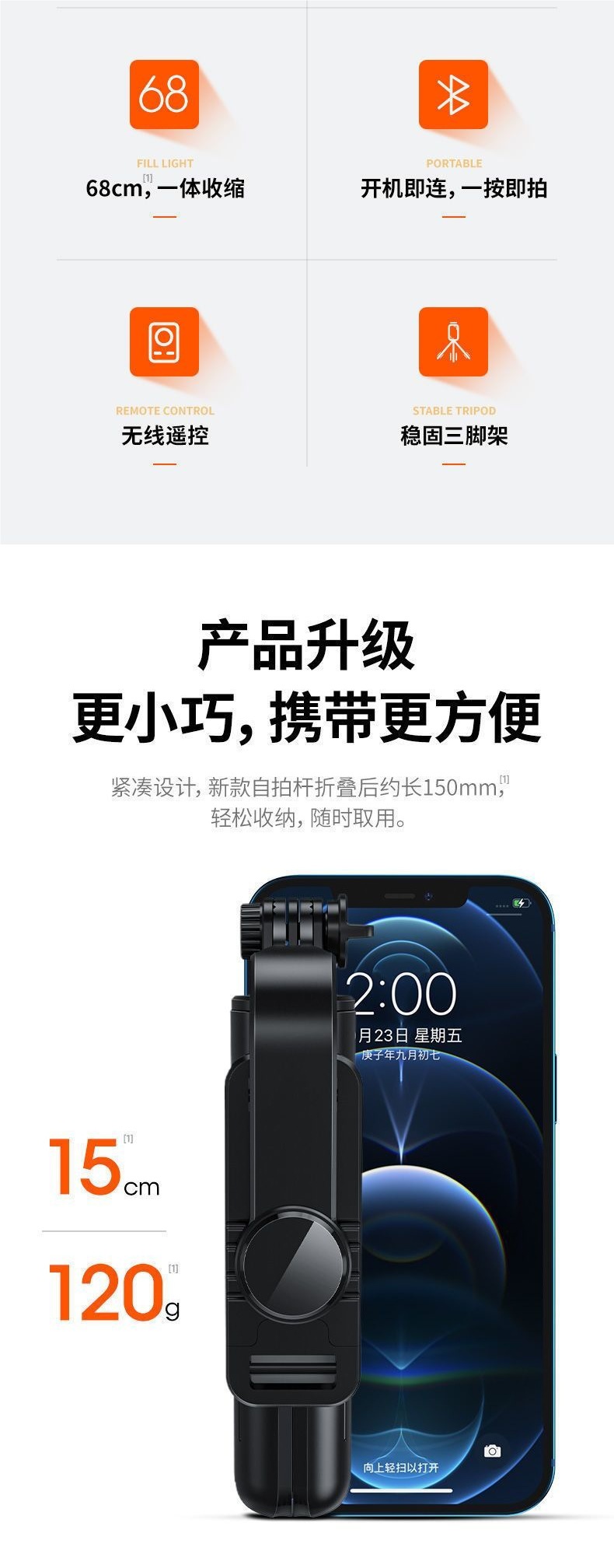 미니 셀카봉, 완전 자동 다기능 휴대폰 라이브 방송 삼각대 스탠드, 보조광, 원격 제어, 사진 및 비디오 범용스토어 가기