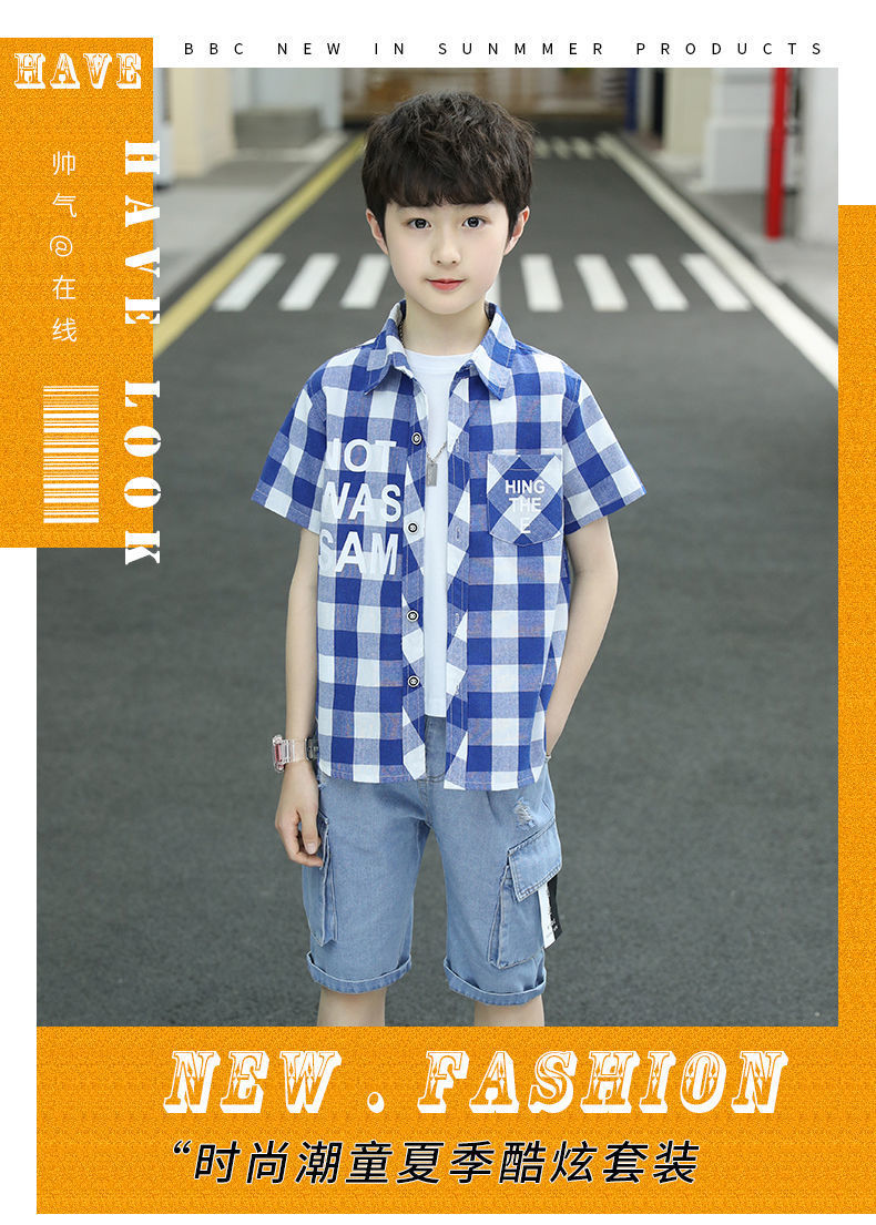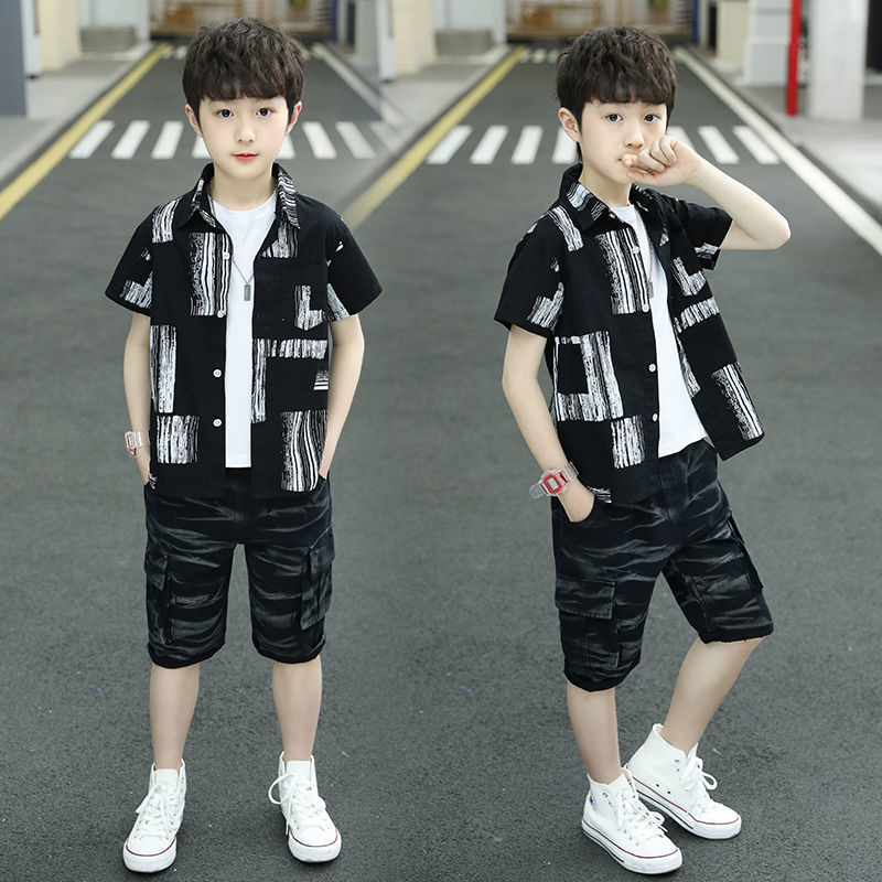 큰 어린이를위한 소년 여름 정장 2023 새로운 어린이 잘 생긴 셔츠 투피스 세트 여름 소년 유행스토어 가기