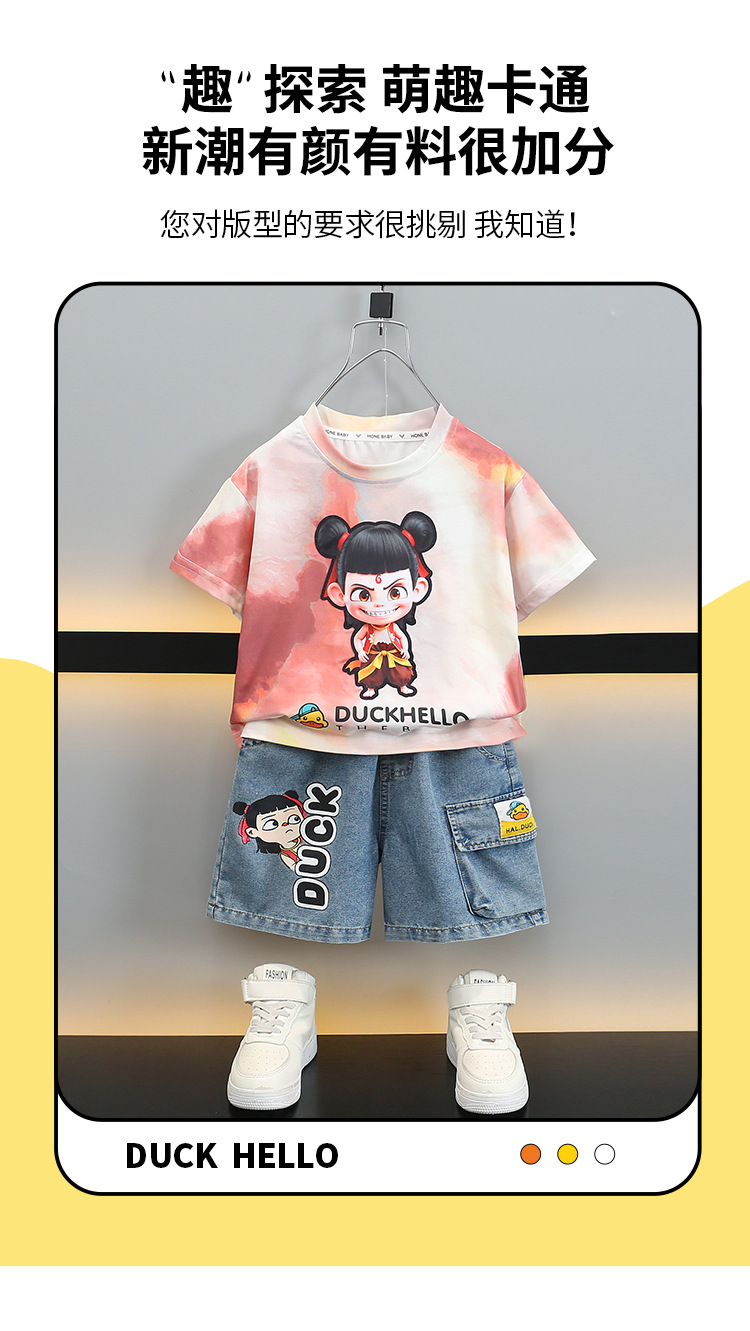 Na Zha 아동복 소년 여름 정장 2025 새로운 잘 생긴 Na Zha 옷 여름 반팔 아기 여름 스타일스토어 가기