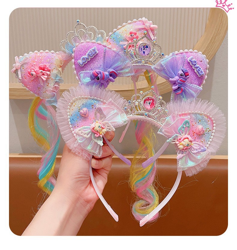 새로운 어린이 헤어 밴드 포니 포니 가발 땋은 공주 크라운 슈퍼 요정 활 고양이 귀 소녀 머리 버클스토어 가기