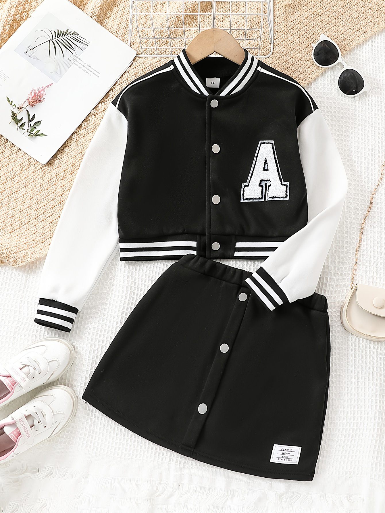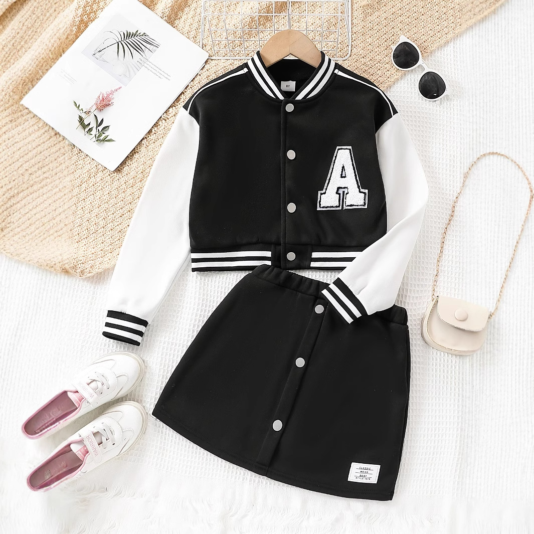 여자 가을, 겨울 검은 색 긴 소매 야구 유니폼 재킷 + 스커트 패션 정장스토어 가기