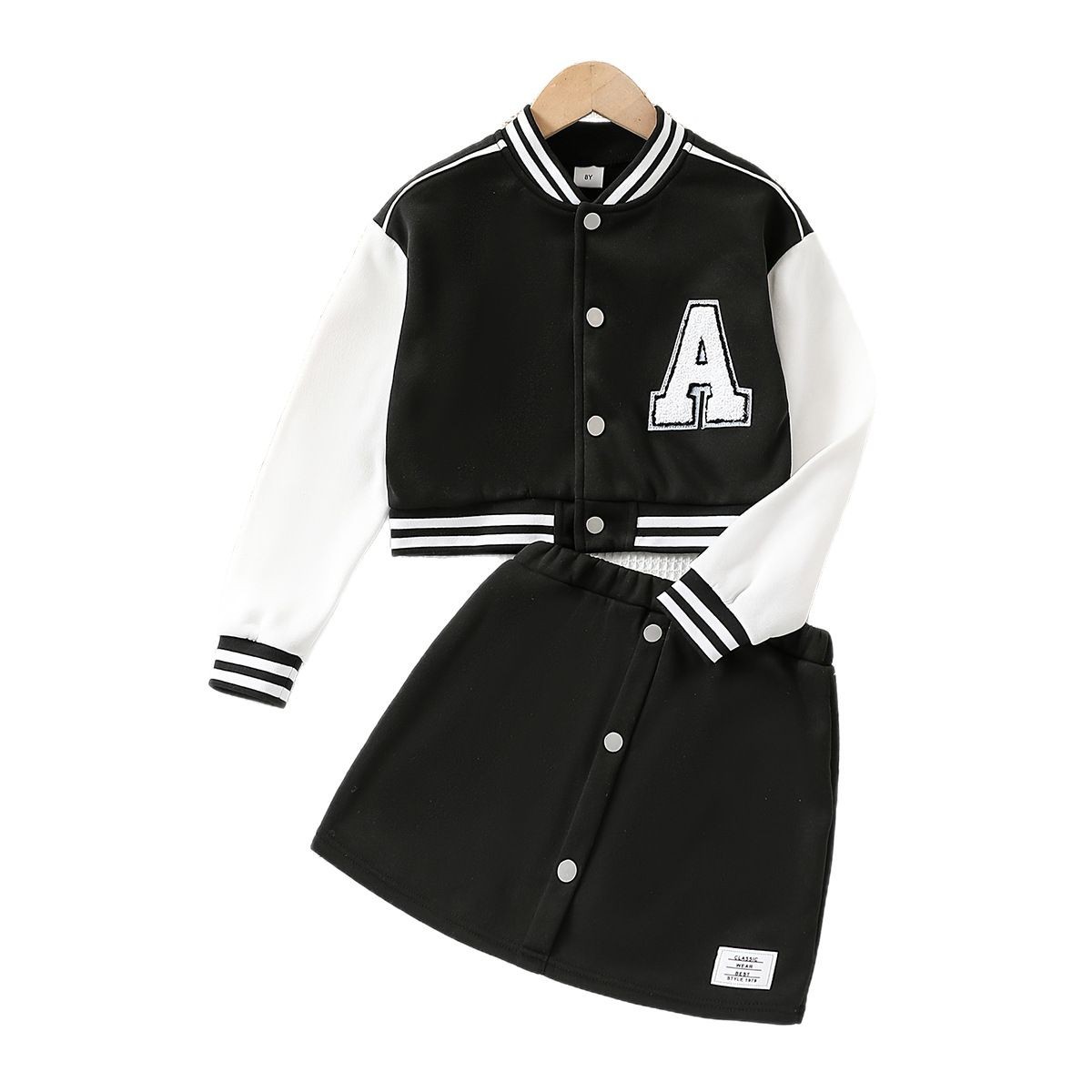 여자 가을, 겨울 검은 색 긴 소매 야구 유니폼 재킷 + 스커트 패션 정장