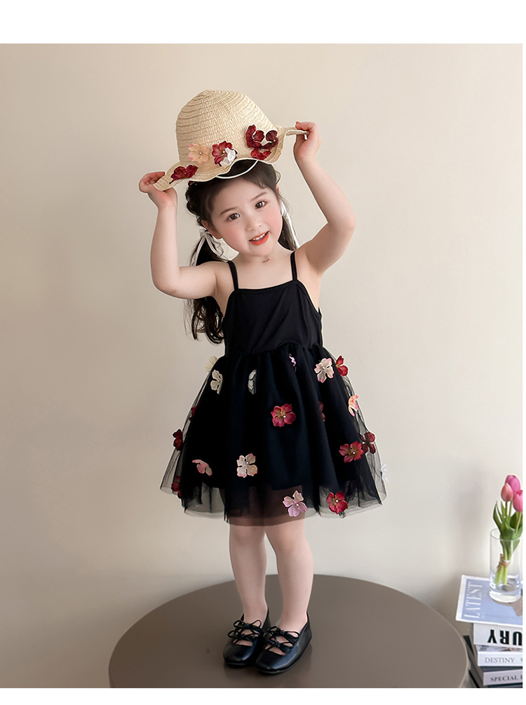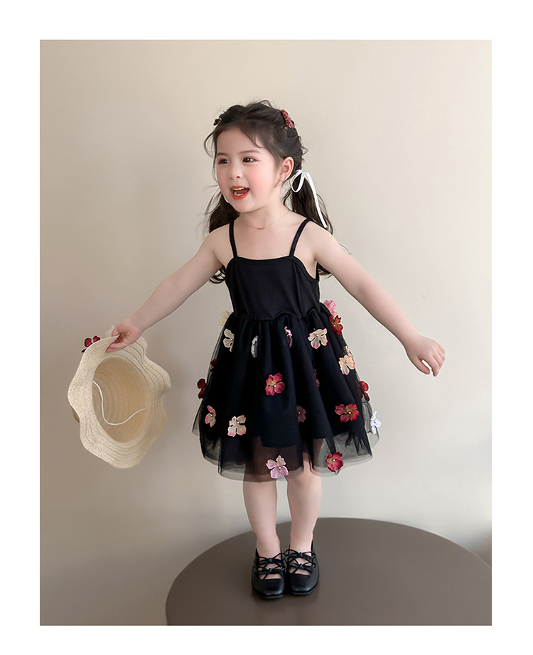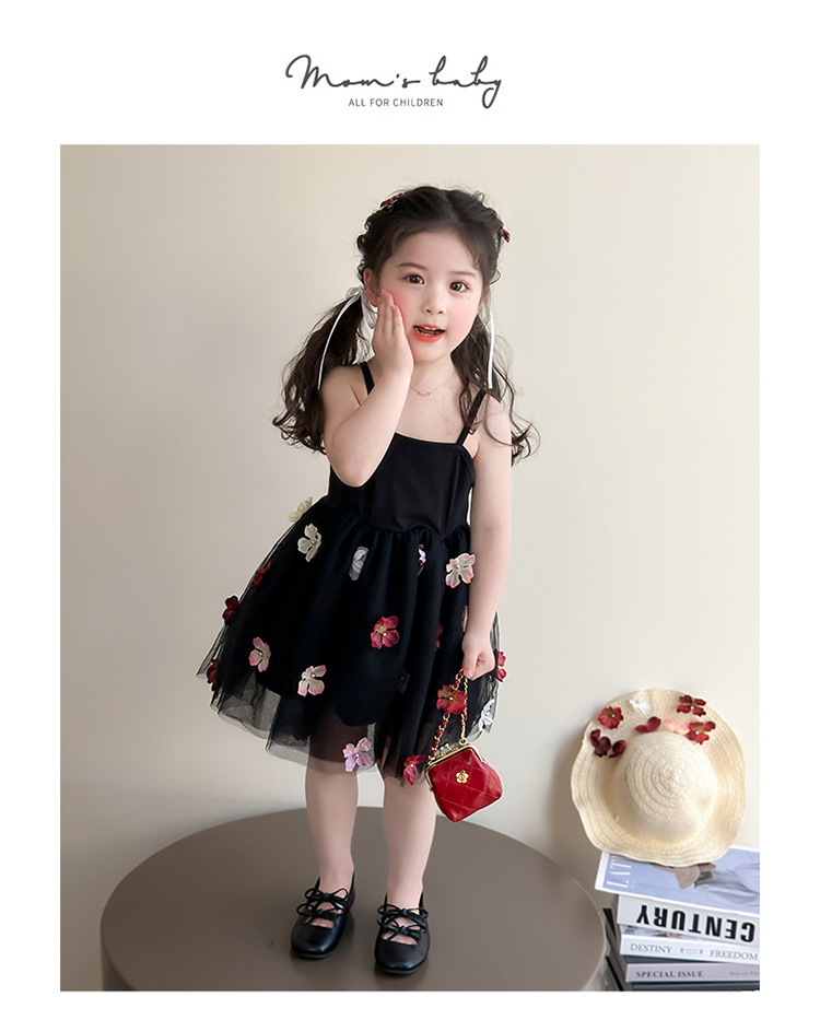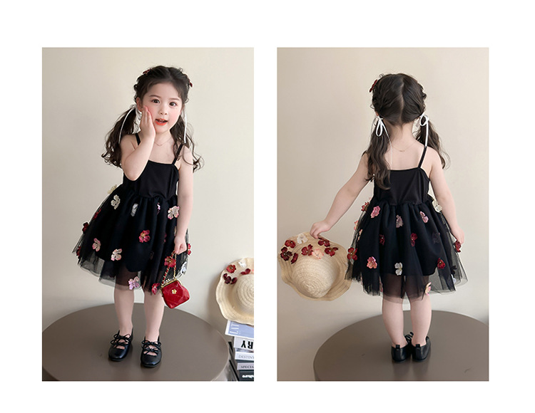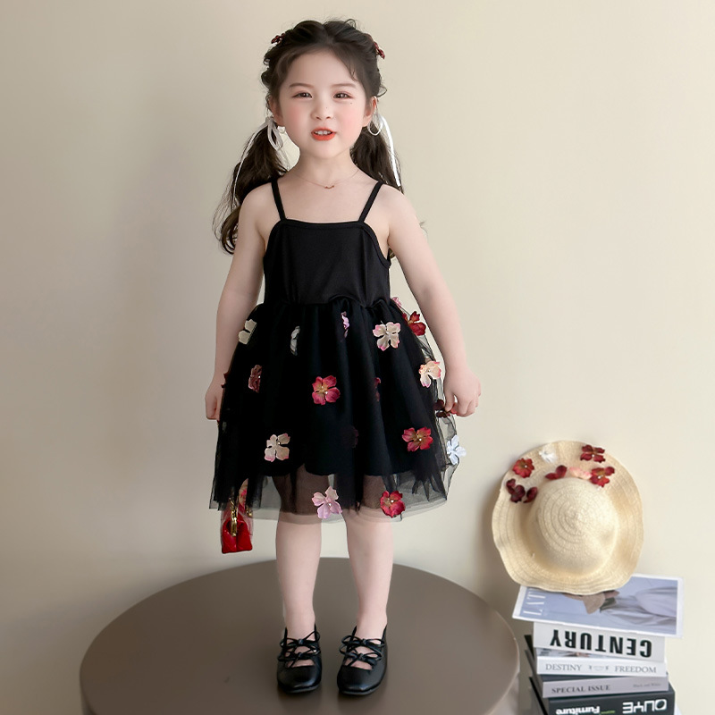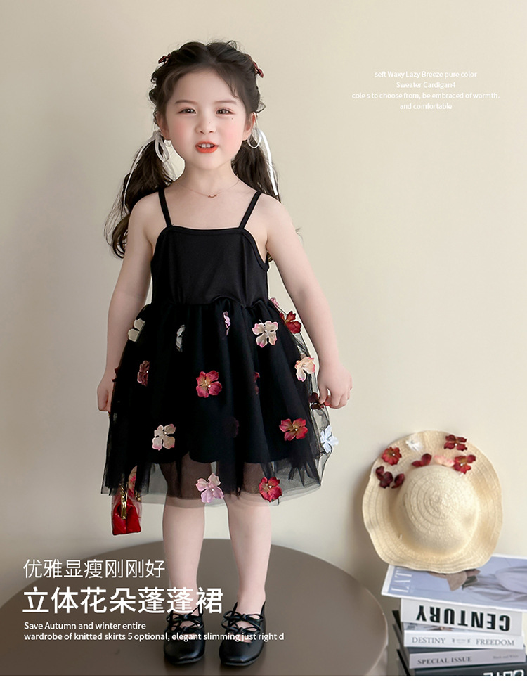 소녀의 스트랩 꽃 원피스 2025 여름 새로운 어린이 서양식 소녀의 여름 얇은 공주 원피스 베일 원피스스토어 가기