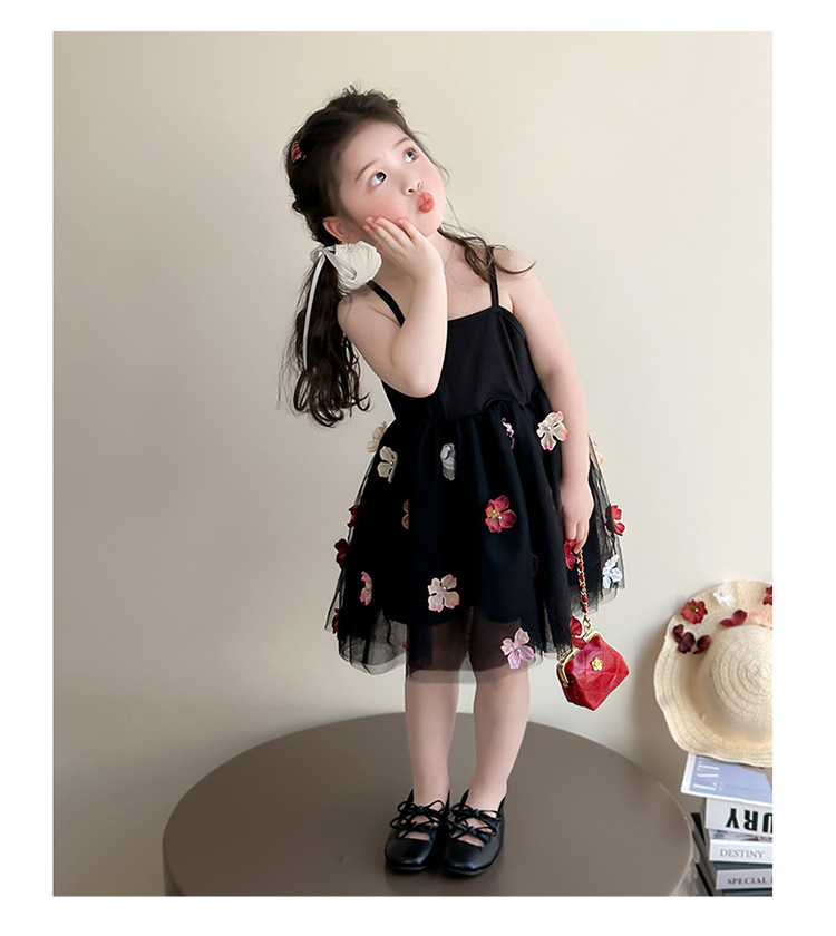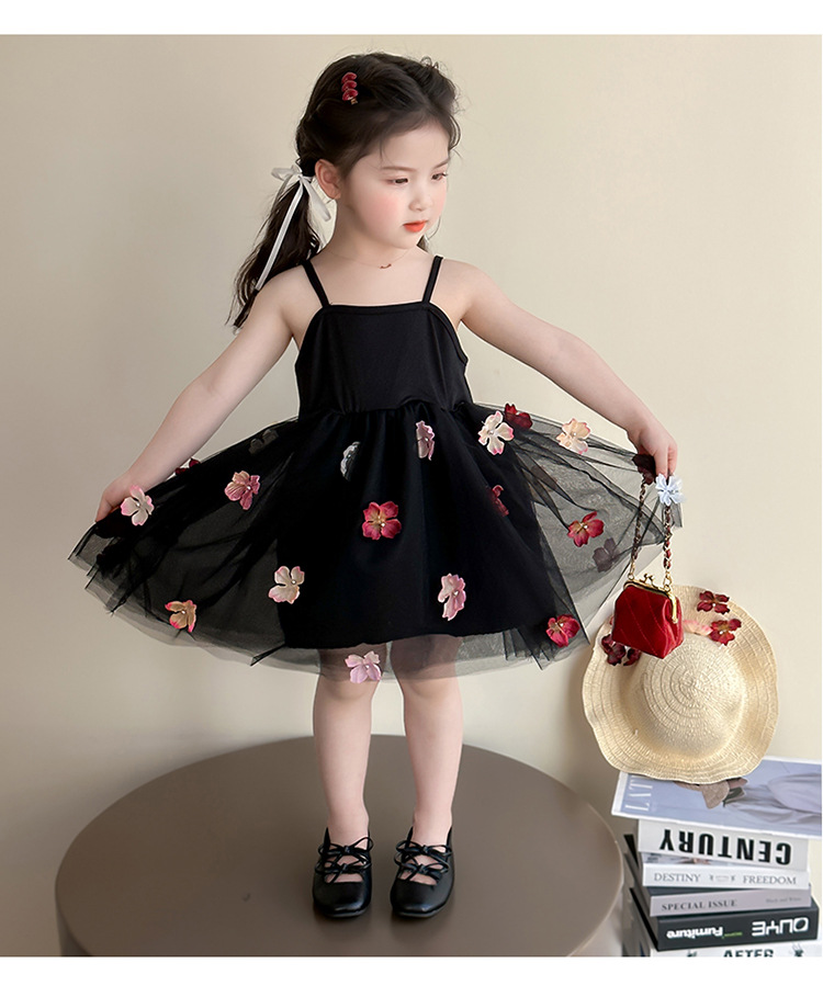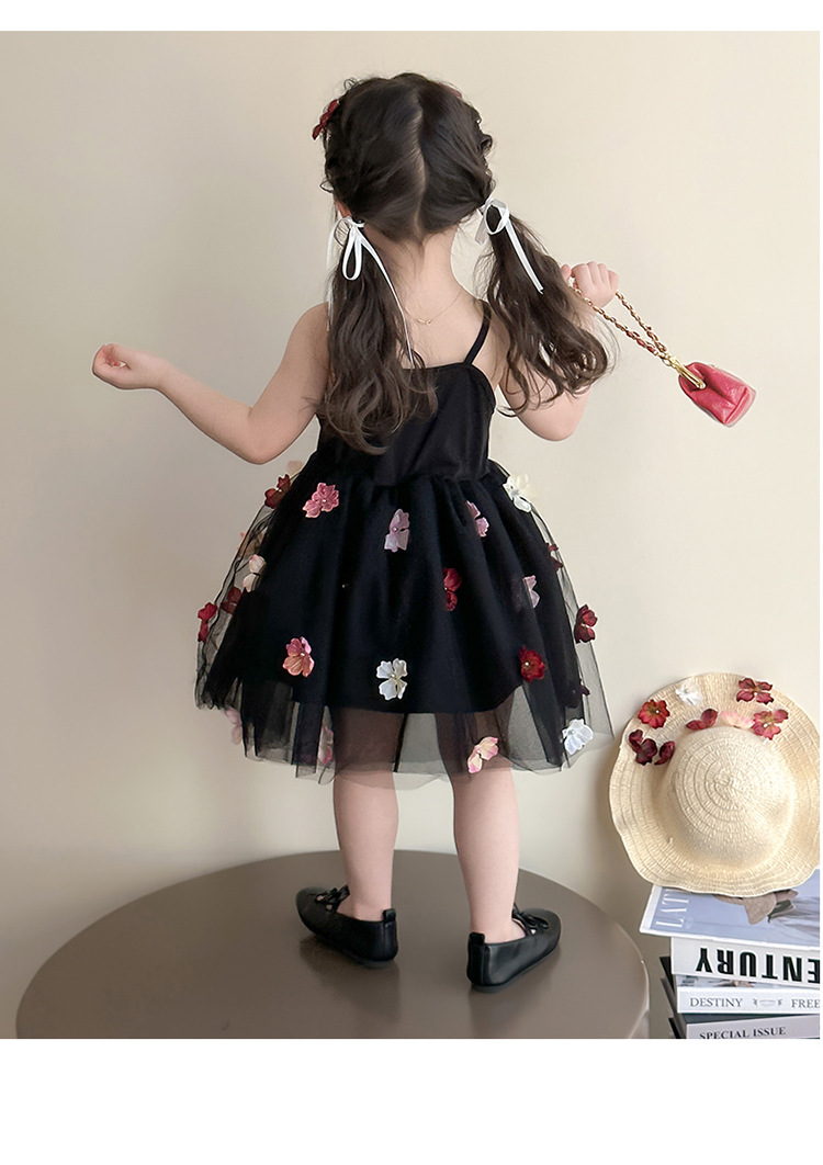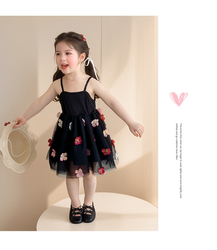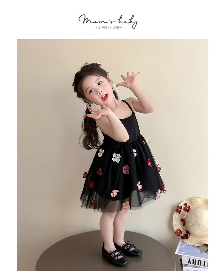 소녀의 스트랩 꽃 원피스 2025 여름 새로운 어린이 서양식 소녀의 여름 얇은 공주 원피스 베일 원피스스토어 가기