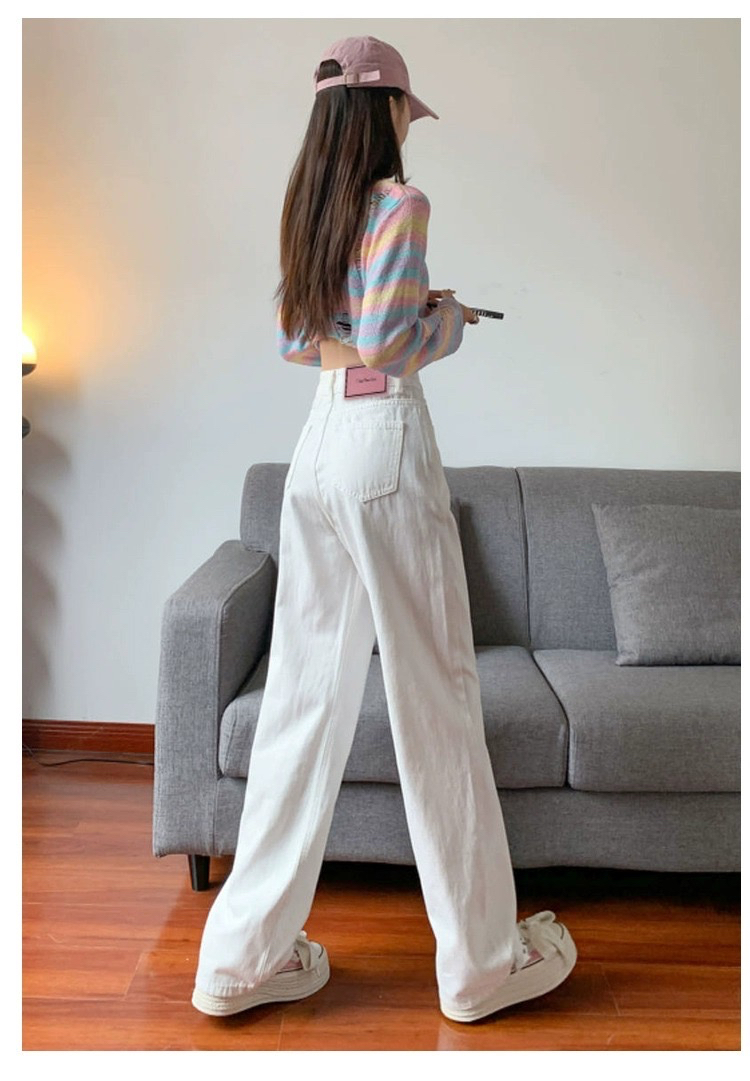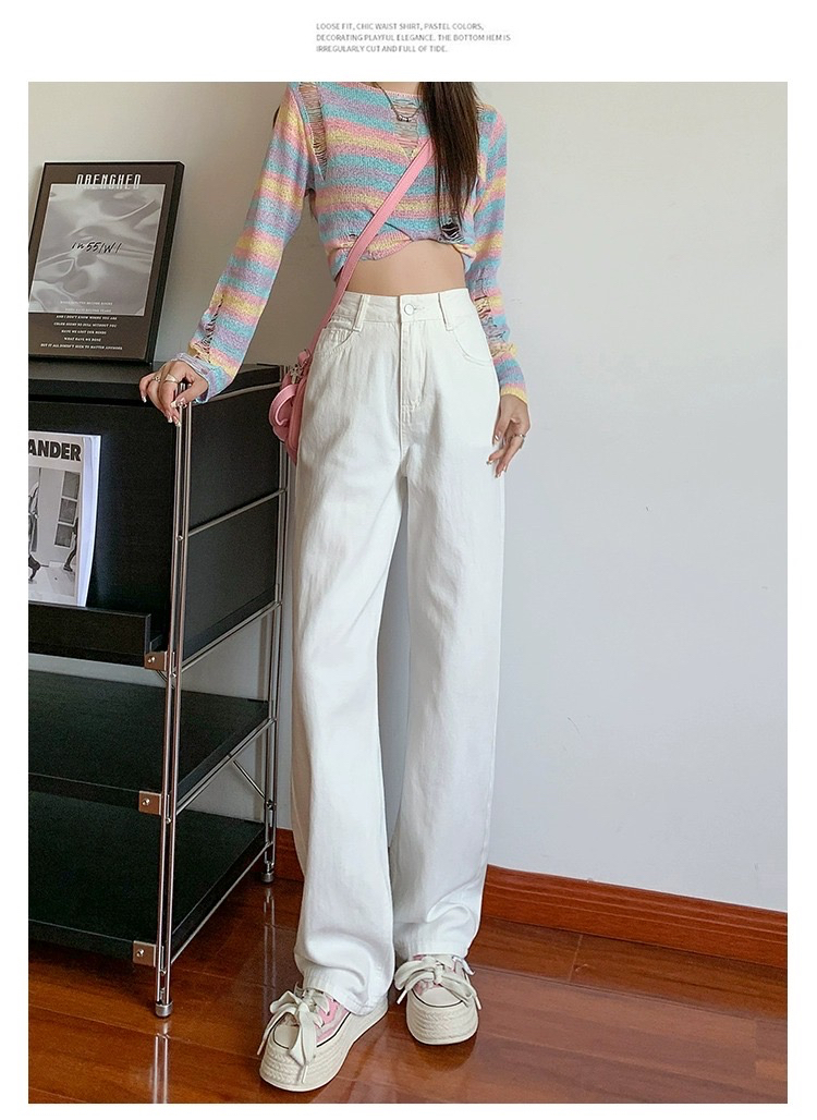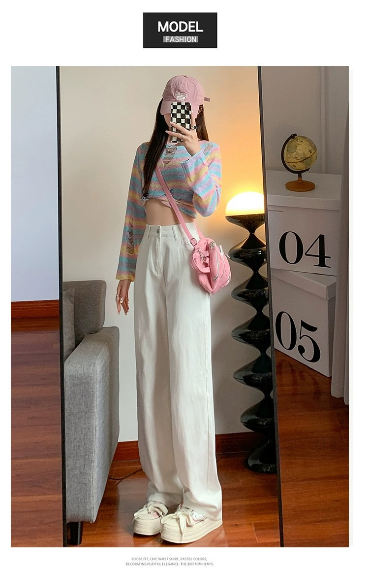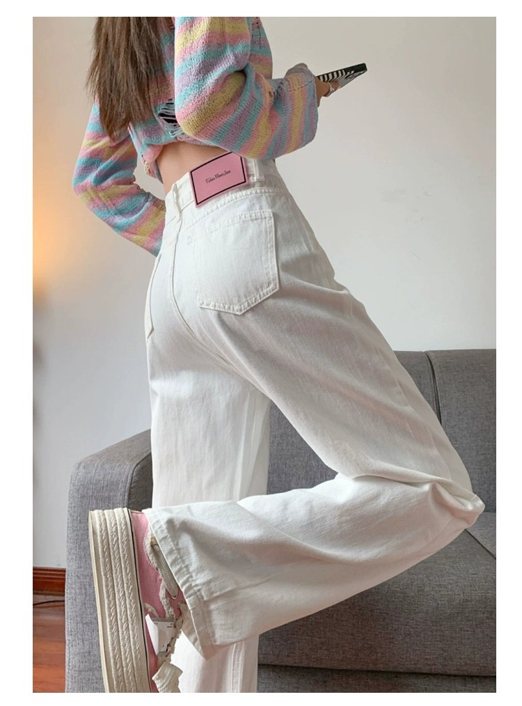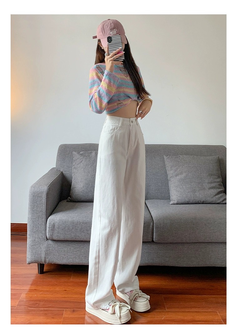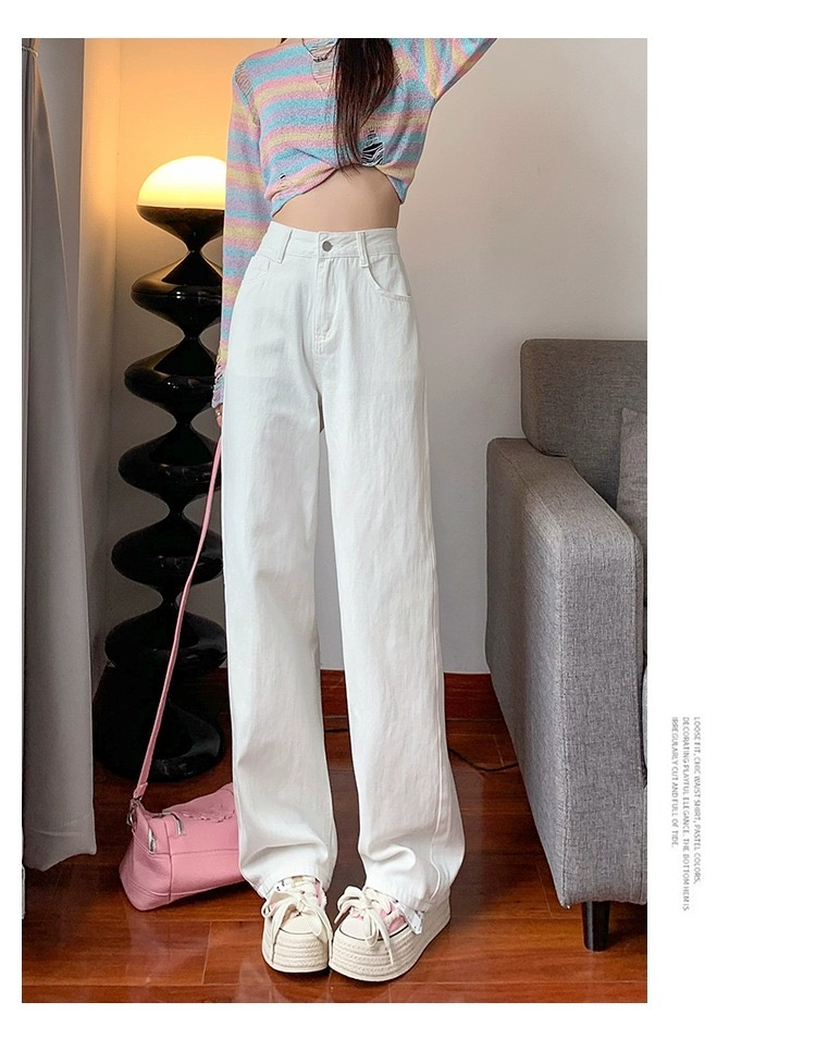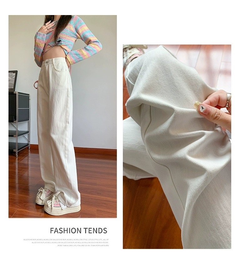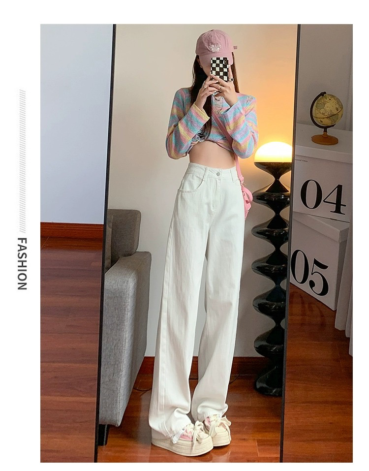 흰색 높은 허리 넓은 다리 청바지 여성의 2025 봄과 가을 새로운 스타일 느슨한 슬리밍 좁은 걸레 바지스토어 가기