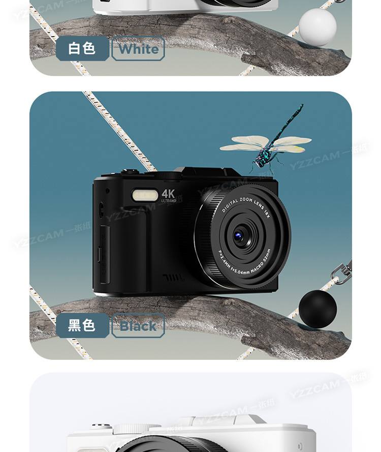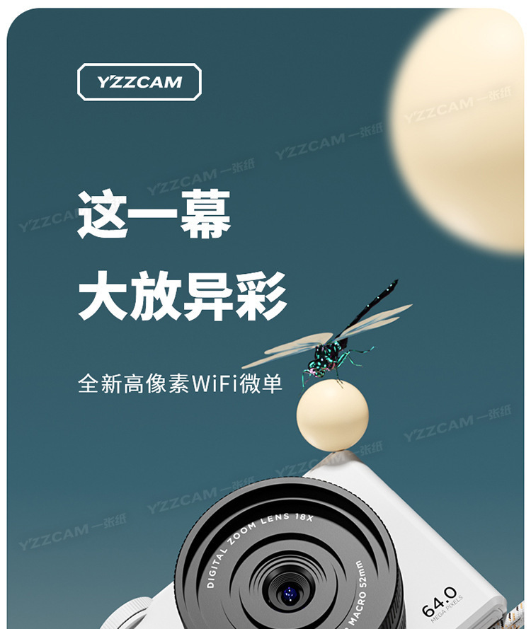 • 흰색 [광각 매크로 렌즈 포함] 디스플레이 플립 + 휴대폰에 WiFi 직접 연결 - 64G 카드 포함