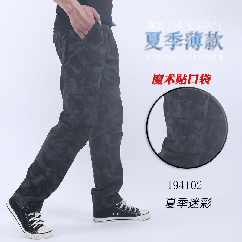 여름 작업 바지 멀티 포켓 바지 유행 브랜드 남성 봄과 가을 바지 느슨한 스트레이트 캐주얼 바지 2024 도매스토어 가기