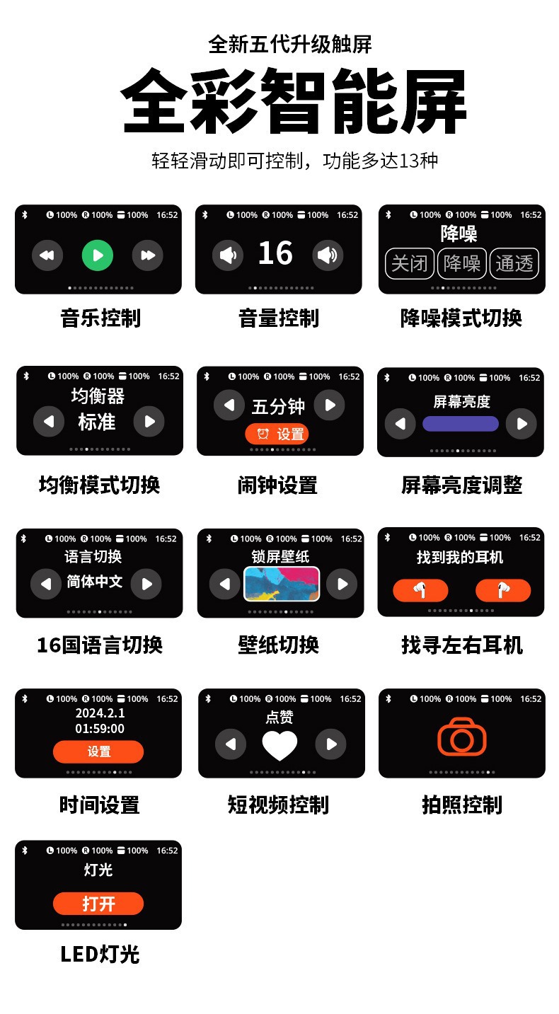 새로운 A9pro 풀 컬러 스크린 터치 블루투스 헤드셋 ANC 능동적 소음 감소 스크린 디스플레이 무선 블루투스 헤드셋 국경스토어 가기