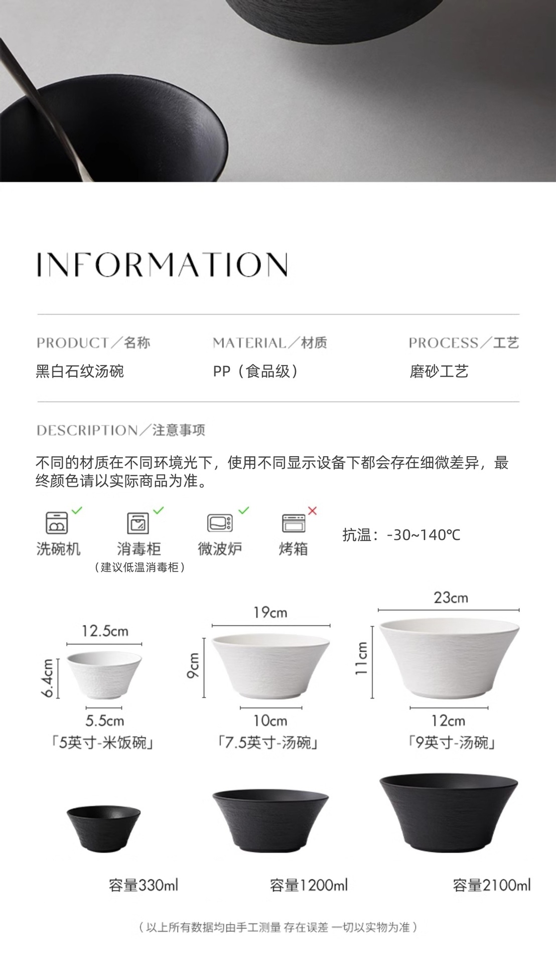 일본식 그릇 벨 입 대형 그릇 고급 수프 그릇 높은 색상 가치 암곡 절인 생선 분지 PP 소재 인스턴트 국수 그릇
