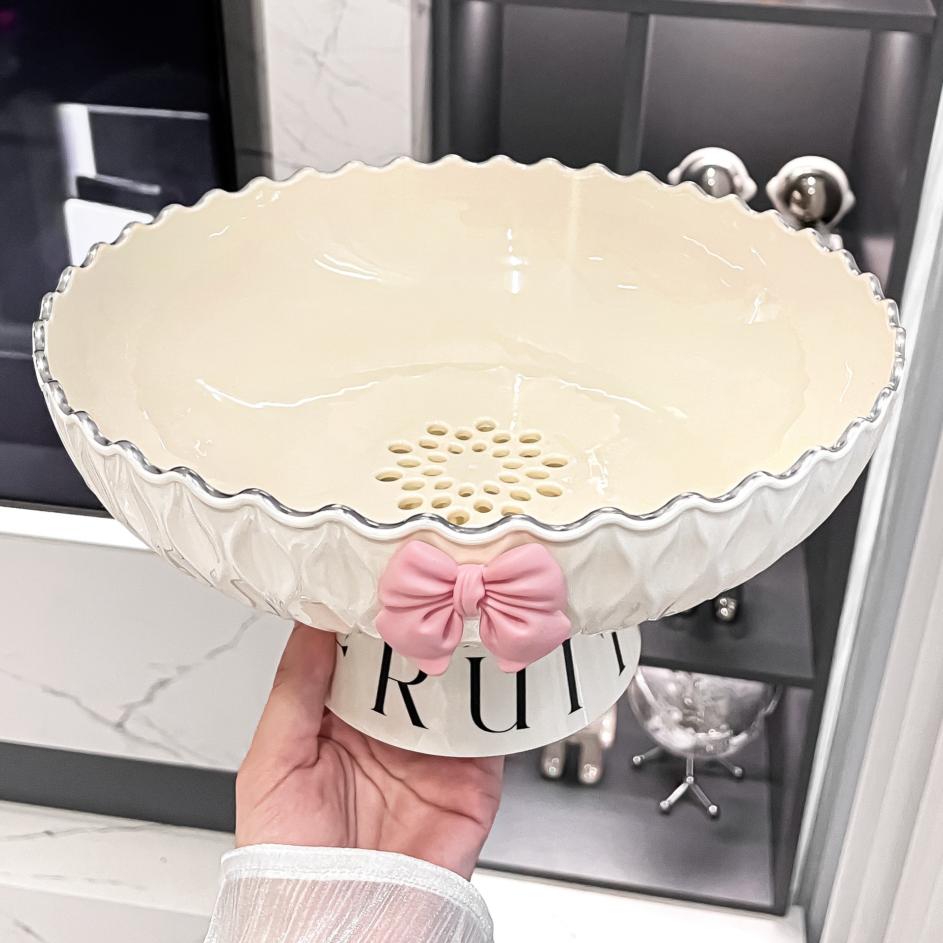 • 라이트 럭셔리 과일 접시 [크림 화이트] + 리본 2개 세트