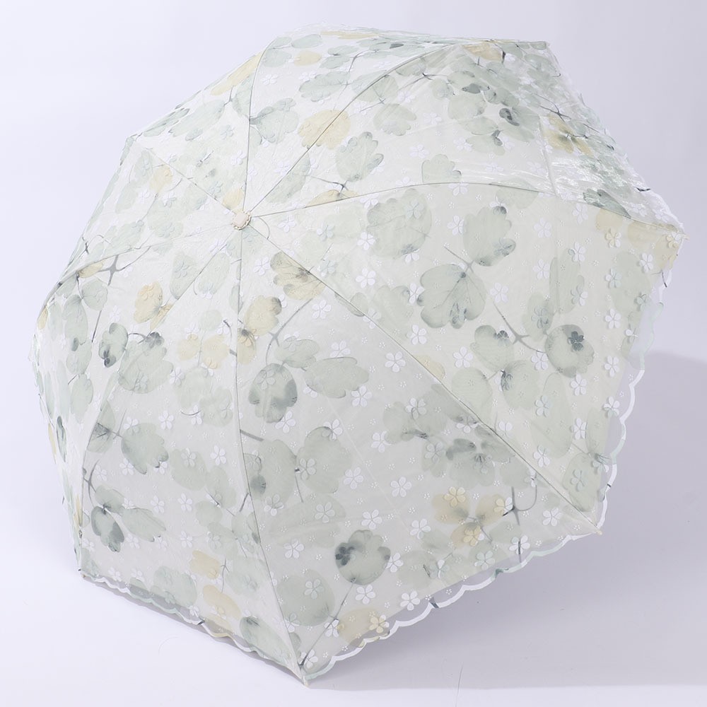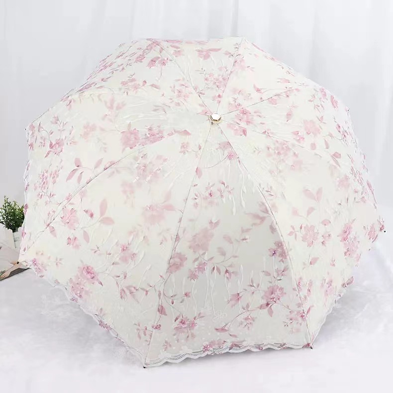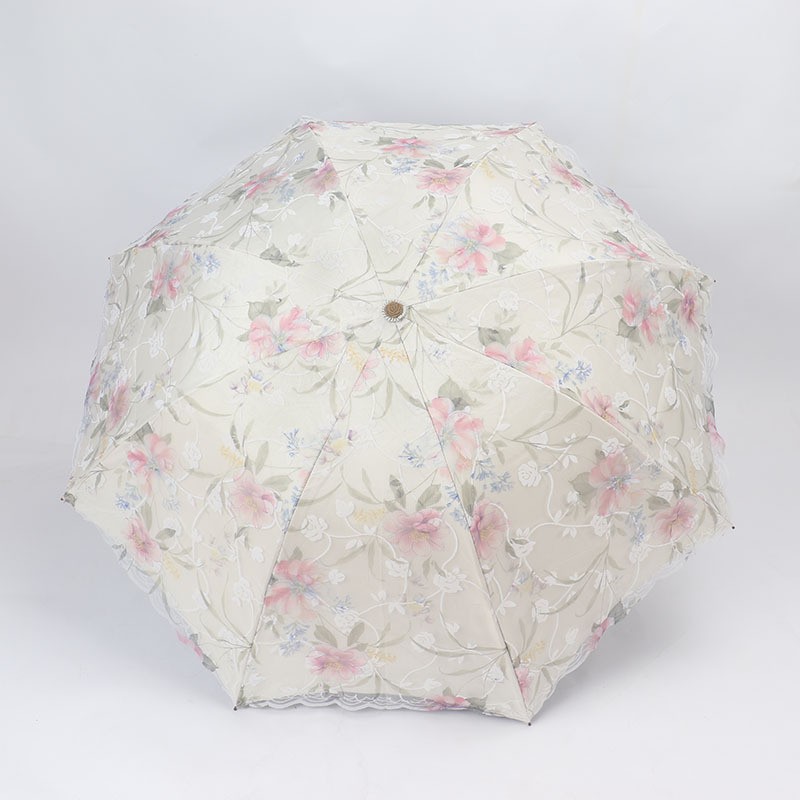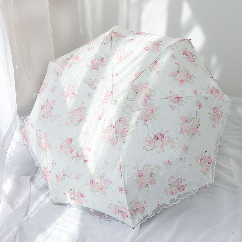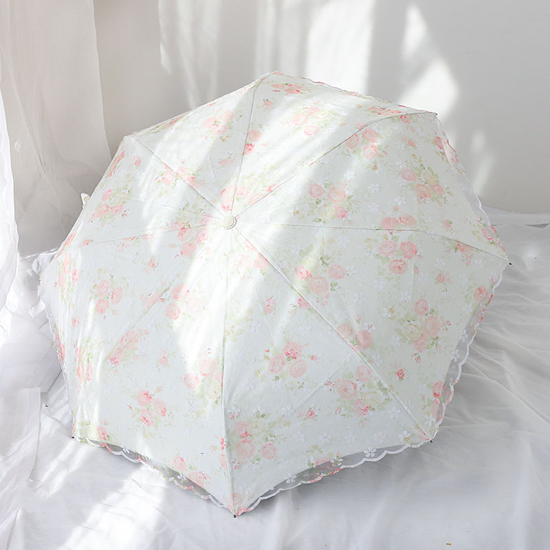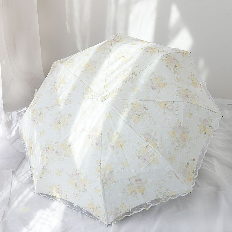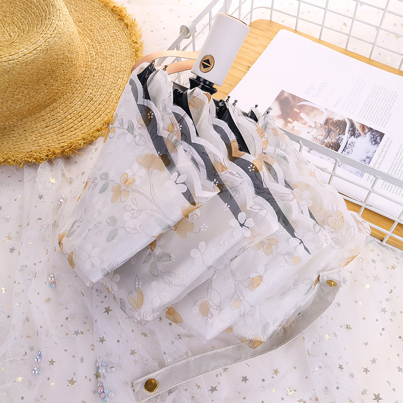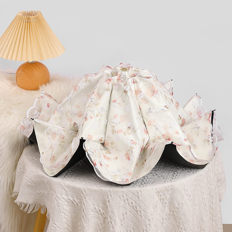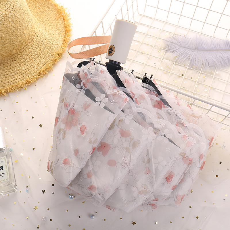 레이스 썬 우산 더블 레이어 UV 보호 메쉬 수 놓은 여성용 블랙 접착제 차양 및 비 이중 사용 3 배 우산 한국스토어 가기