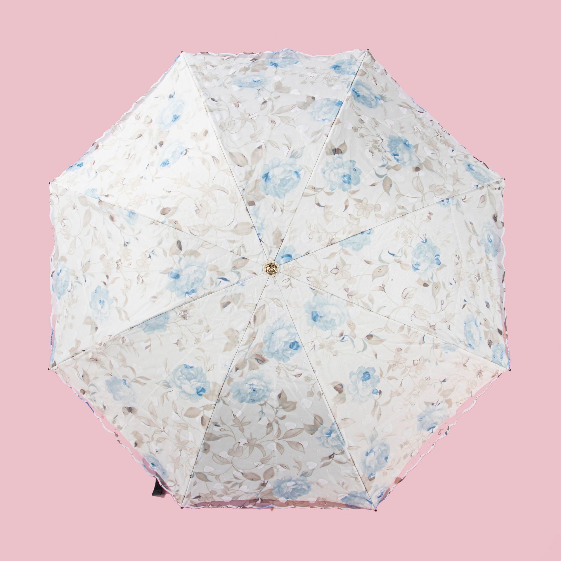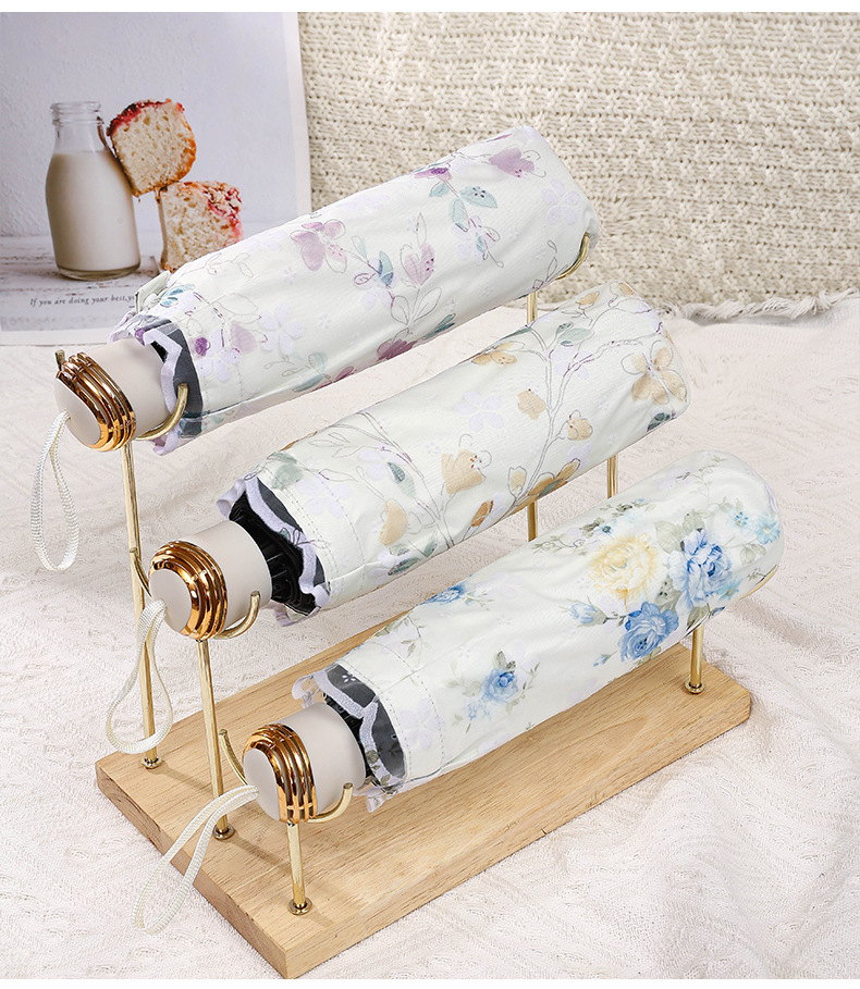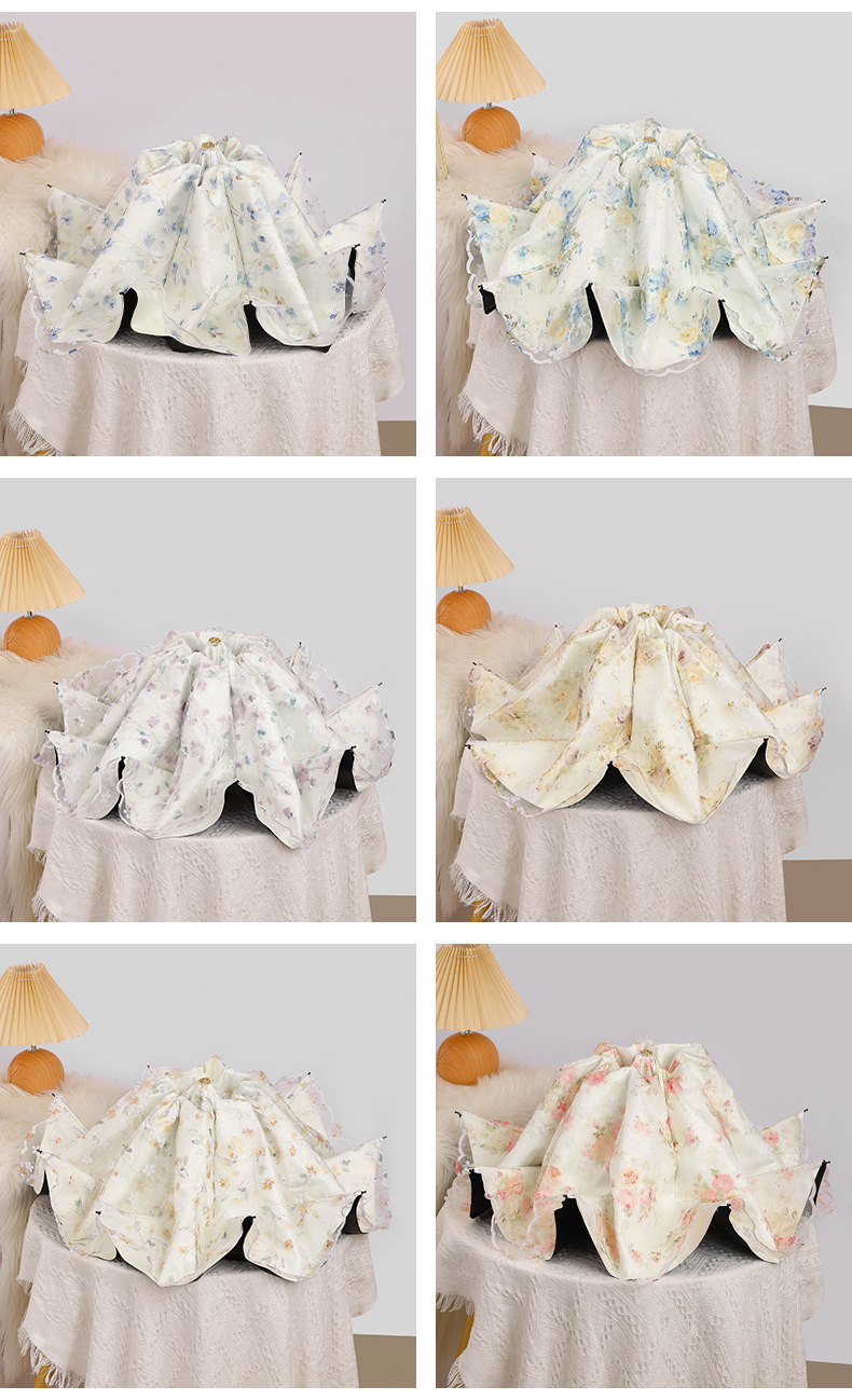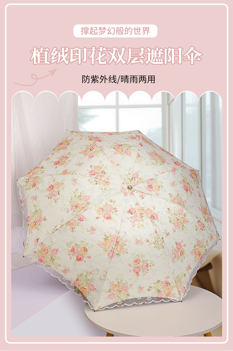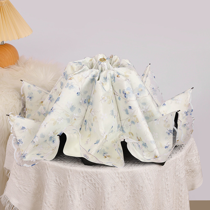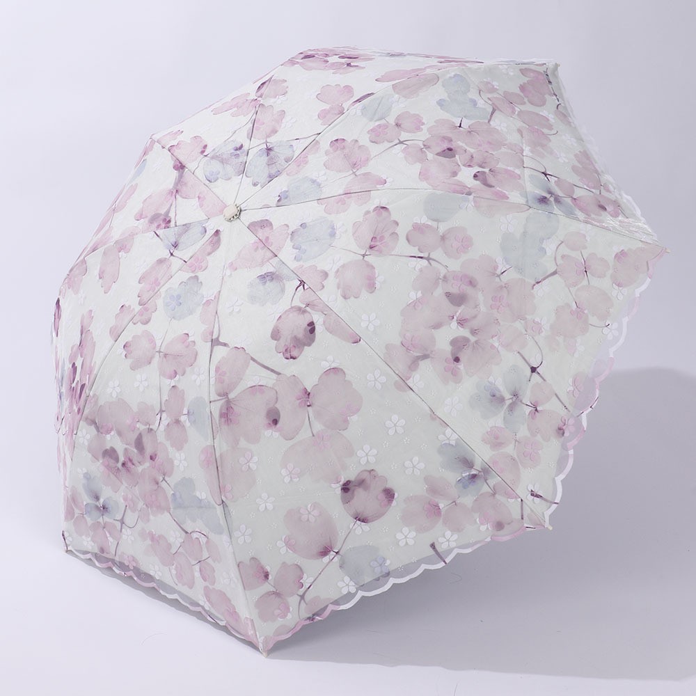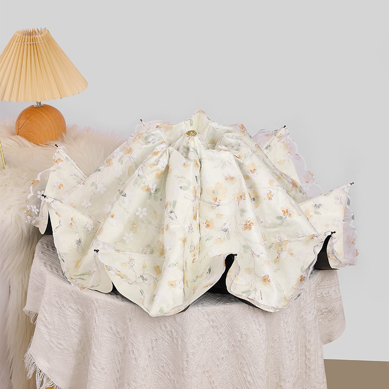 레이스 썬 우산 더블 레이어 UV 보호 메쉬 수 놓은 여성용 블랙 접착제 차양 및 비 이중 사용 3 배 우산 한국스토어 가기