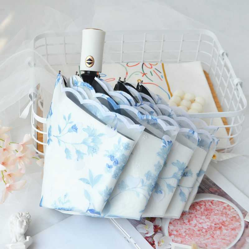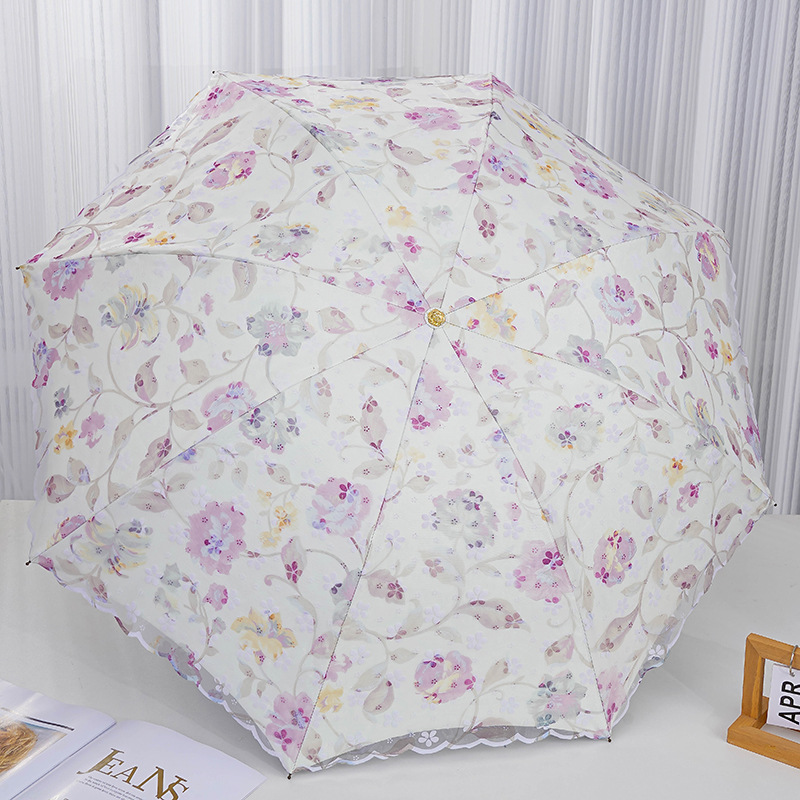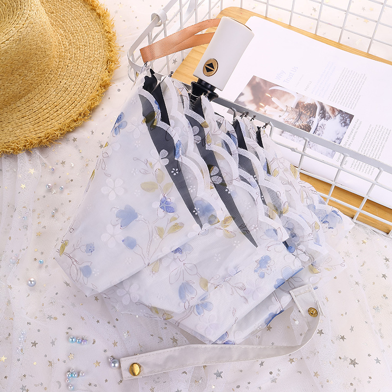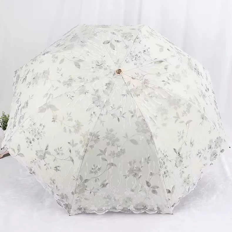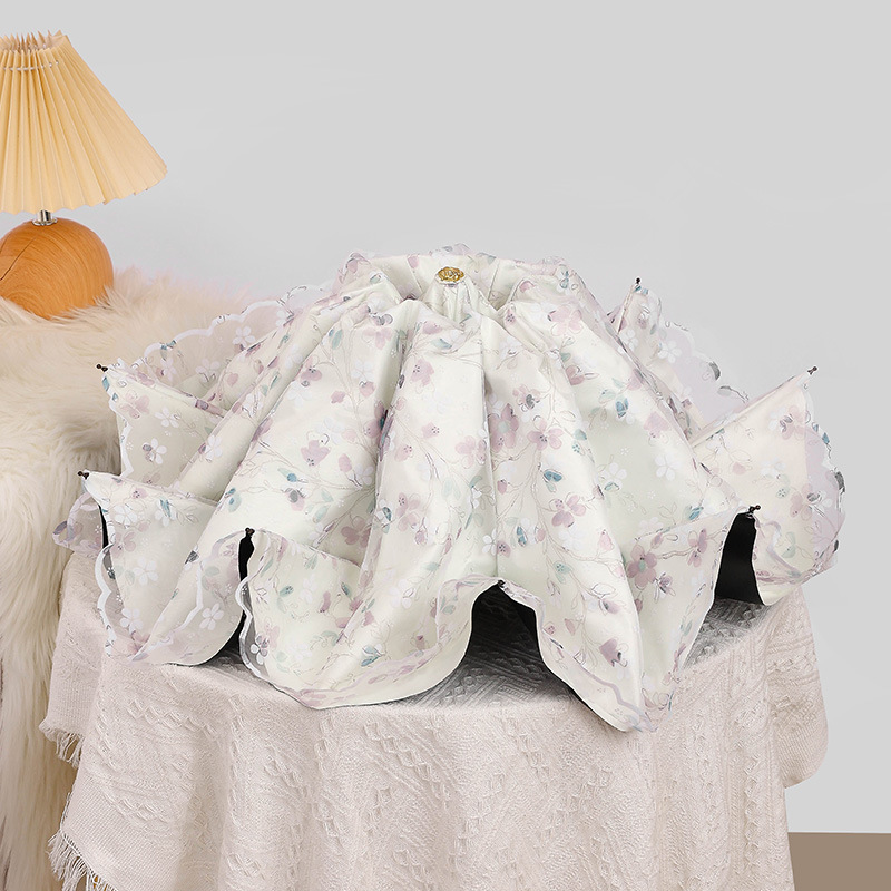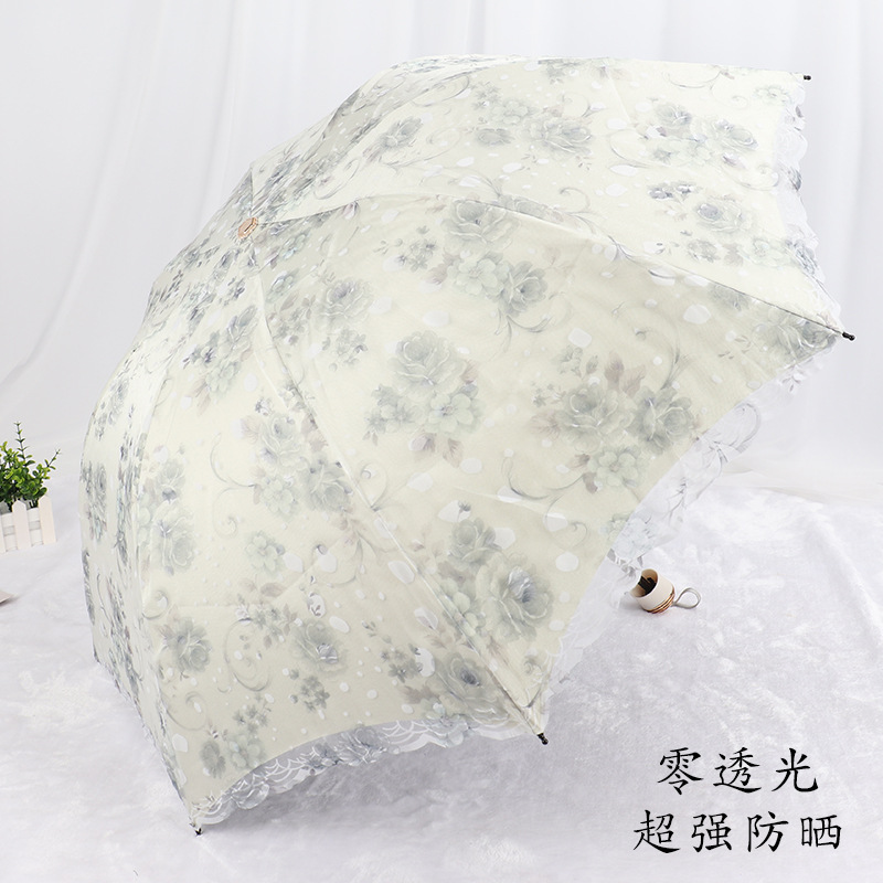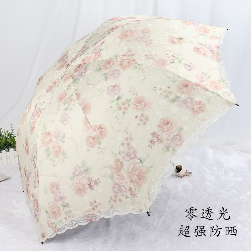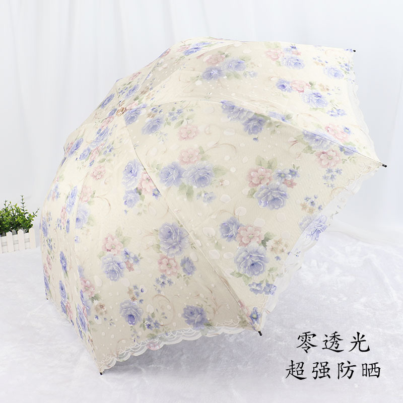 레이스 썬 우산 더블 레이어 UV 보호 메쉬 수 놓은 여성용 블랙 접착제 차양 및 비 이중 사용 3 배 우산 한국