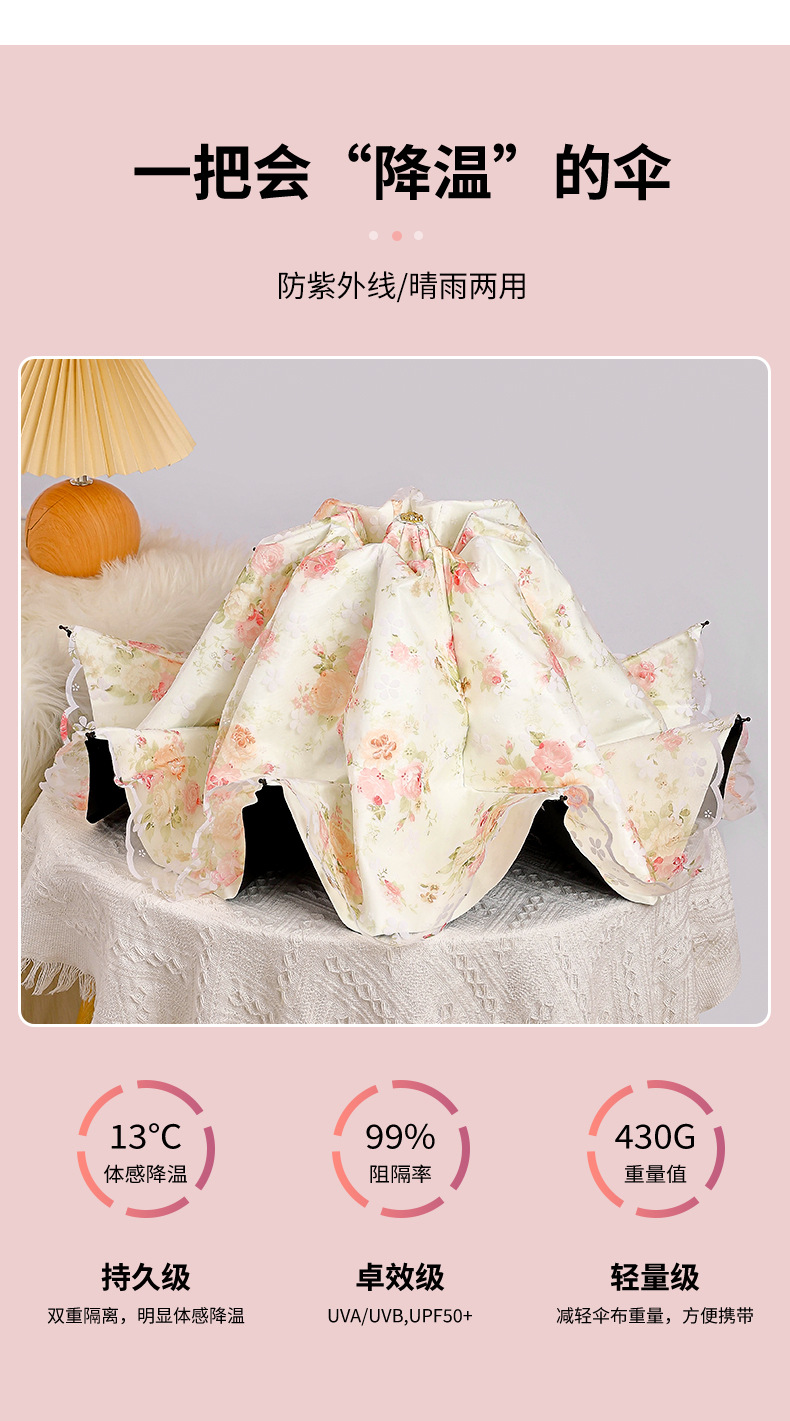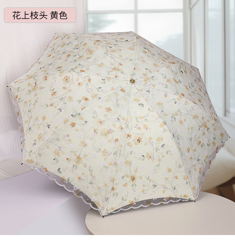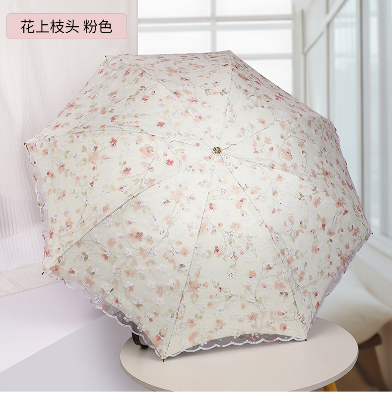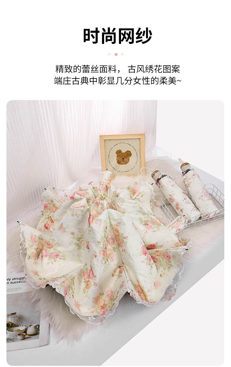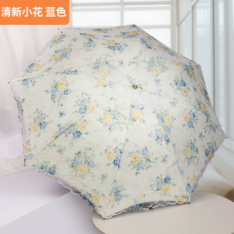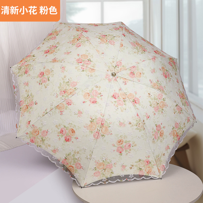 레이스 썬 우산 더블 레이어 UV 보호 메쉬 수 놓은 여성용 블랙 접착제 차양 및 비 이중 사용 3 배 우산 한국