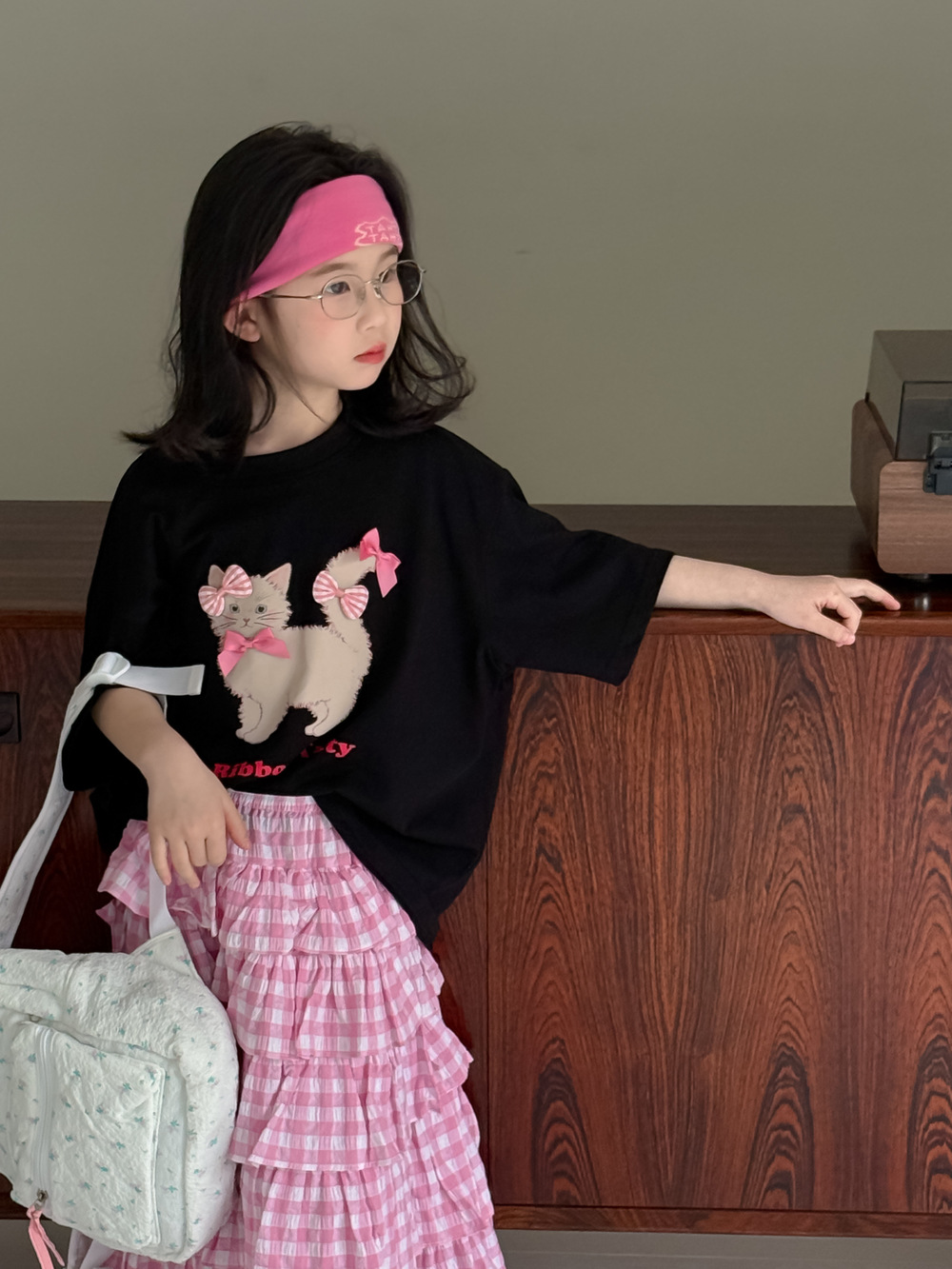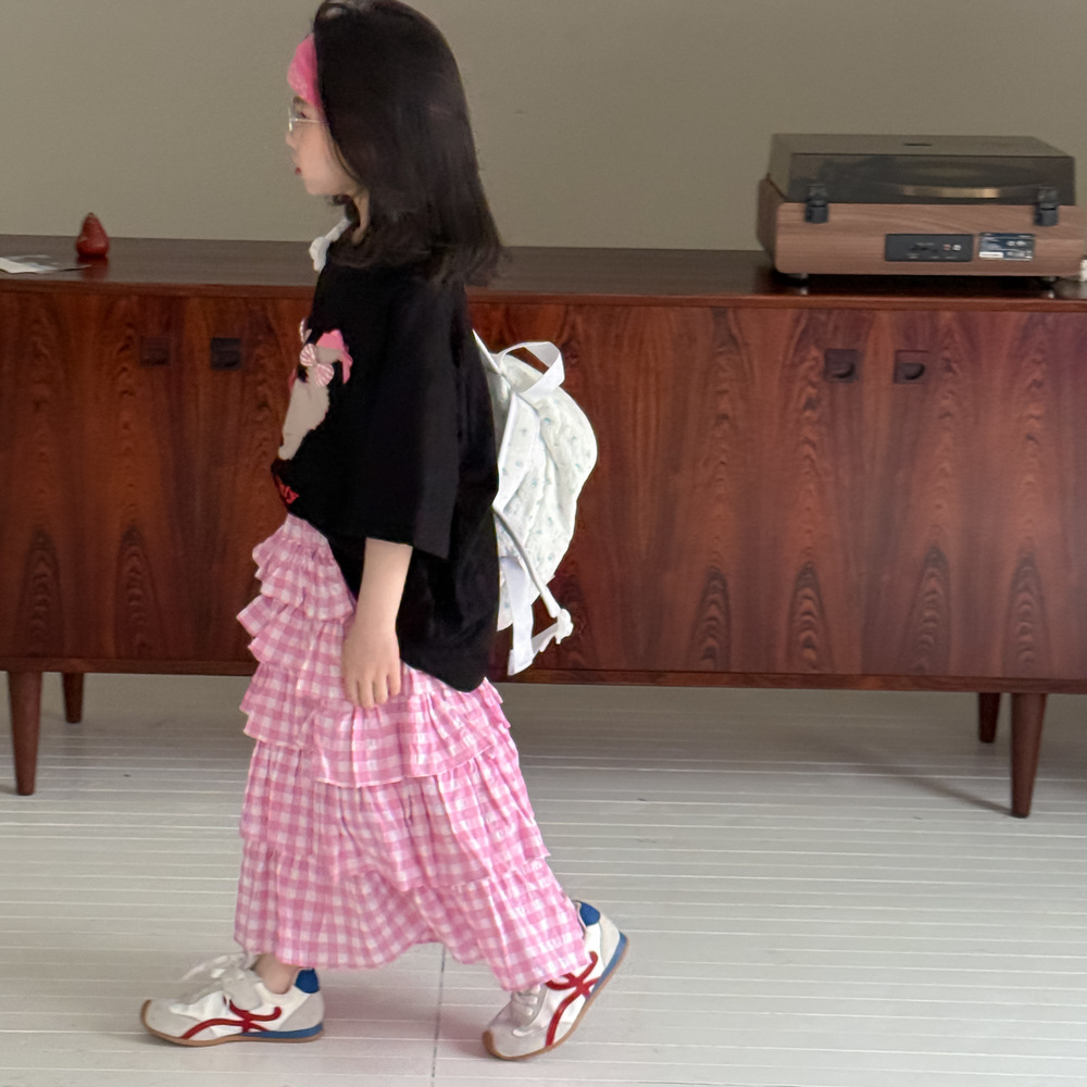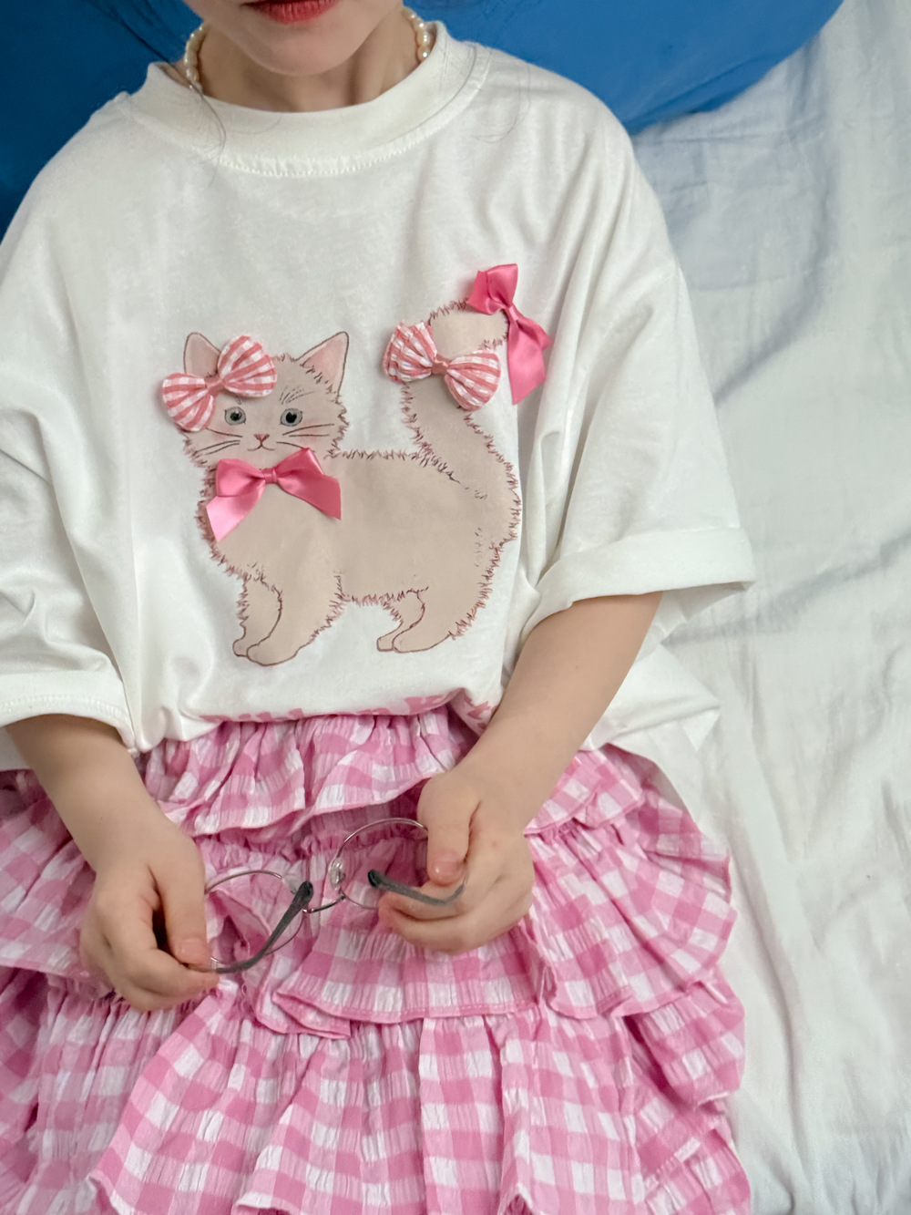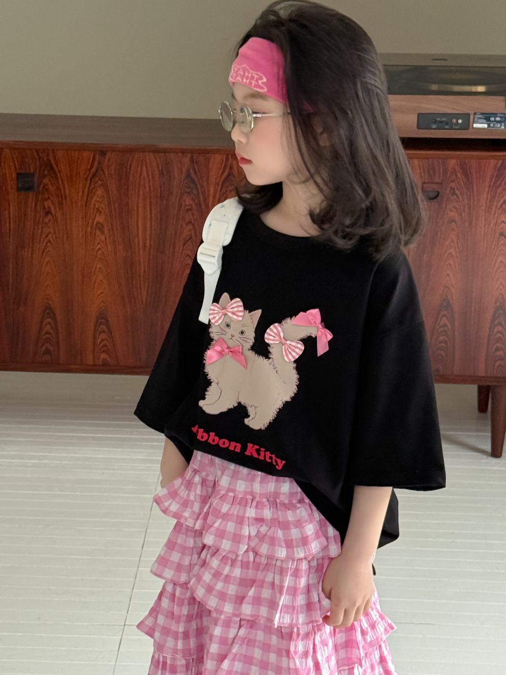 어린이 티셔츠 2025 여름 소녀 한국 고양이 프린트 짧은 소매 어린이 둥근 목 캐주얼 느슨한 활 탑스토어 가기