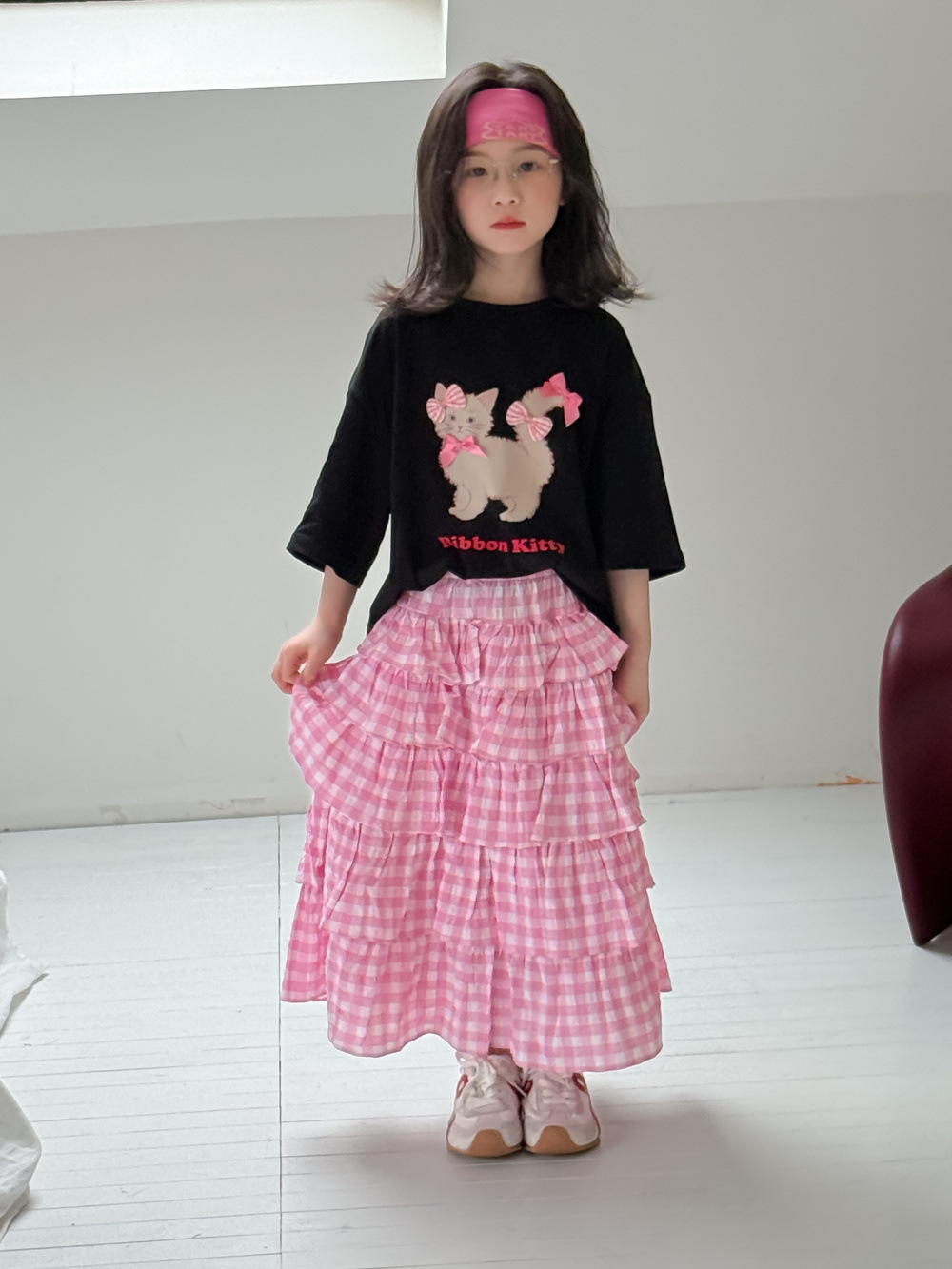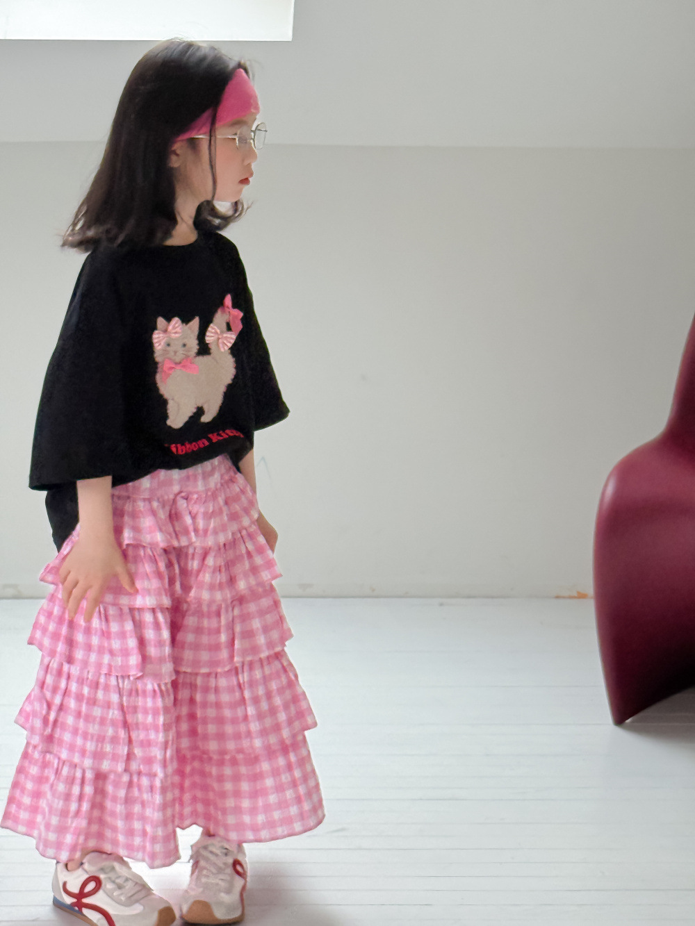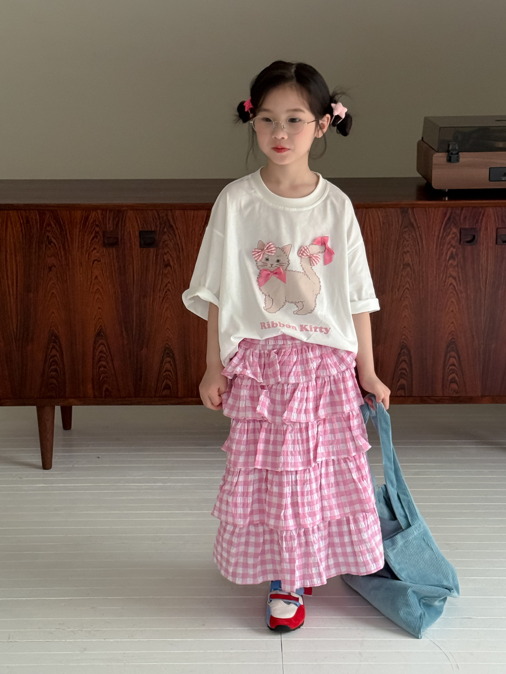 어린이 티셔츠 2025 여름 소녀 한국 고양이 프린트 짧은 소매 어린이 둥근 목 캐주얼 느슨한 활 탑스토어 가기