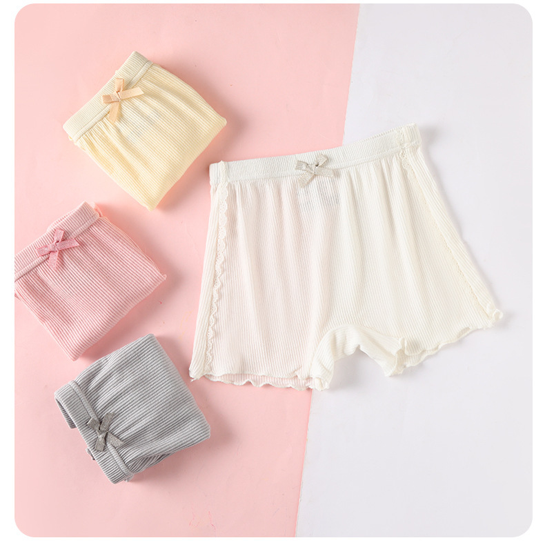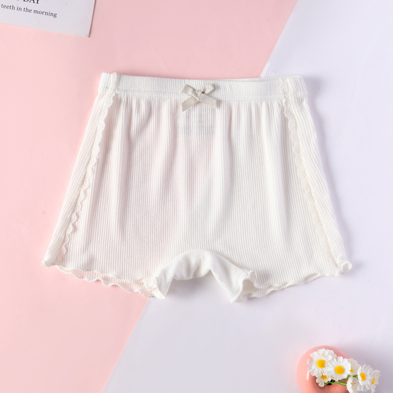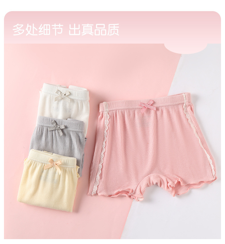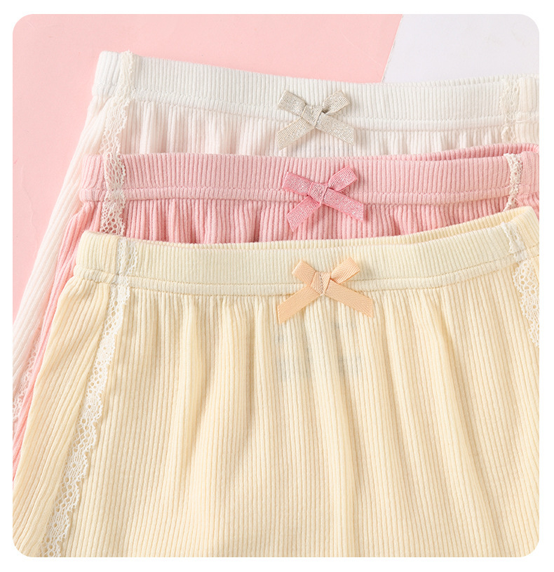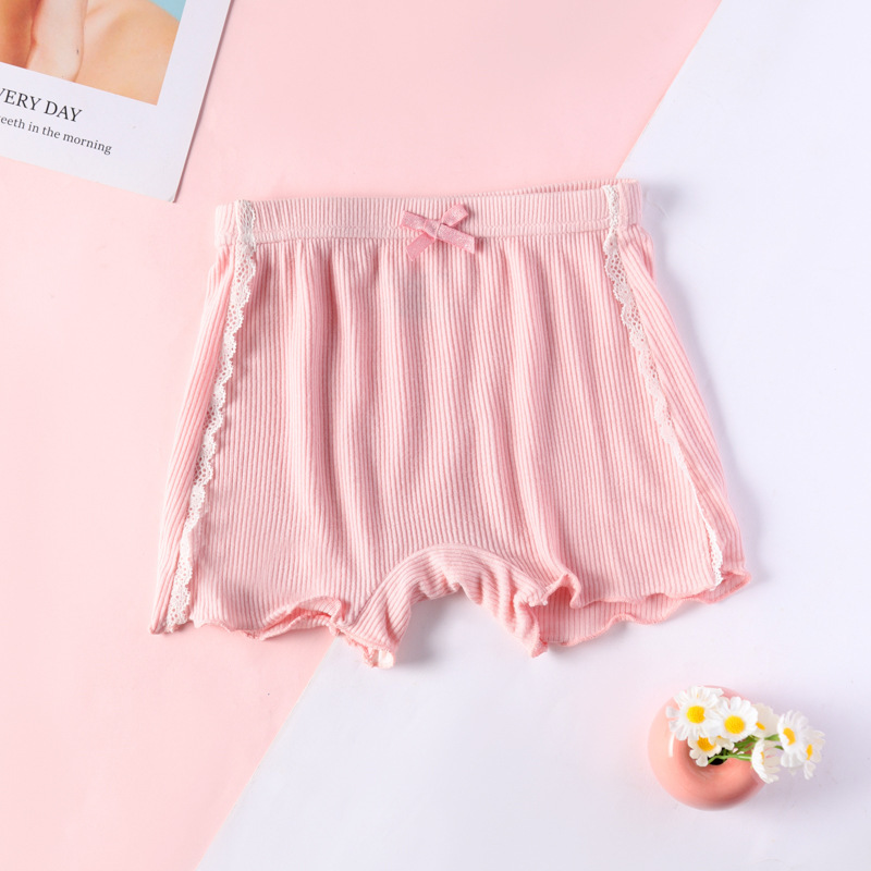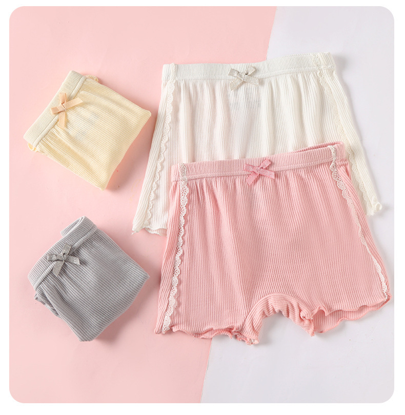 2025 여름 어린이 모달 스트레치 3점 레깅스 중소형 소녀용 리본 레이스 캔디 컬러 반바지