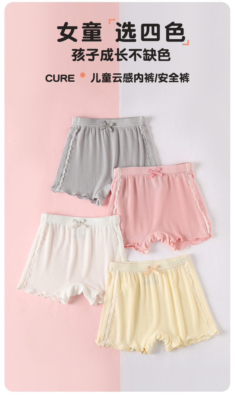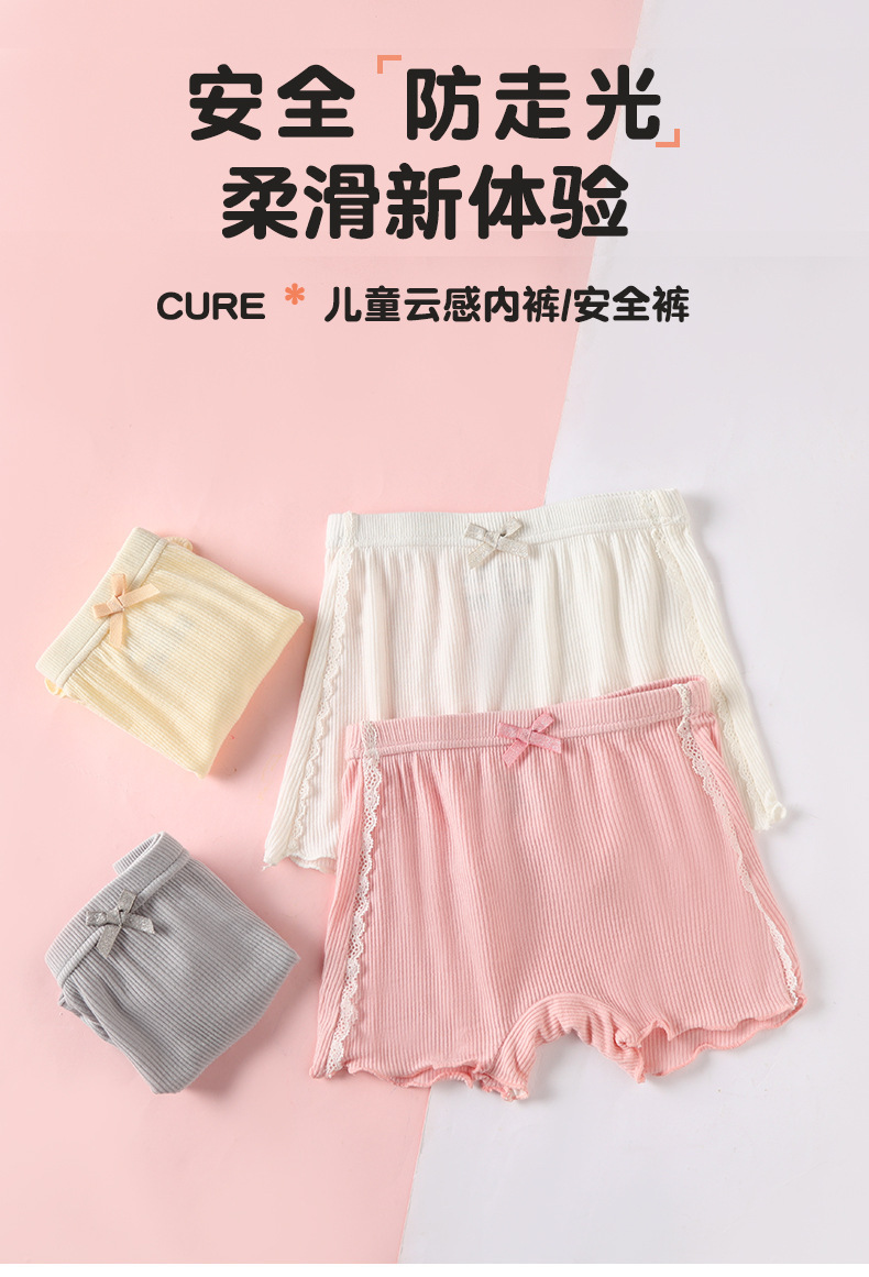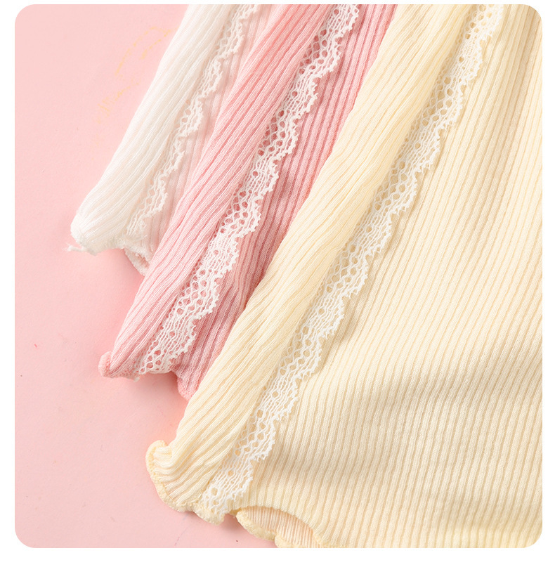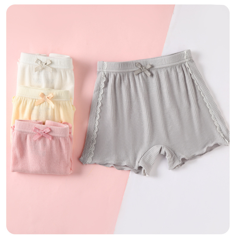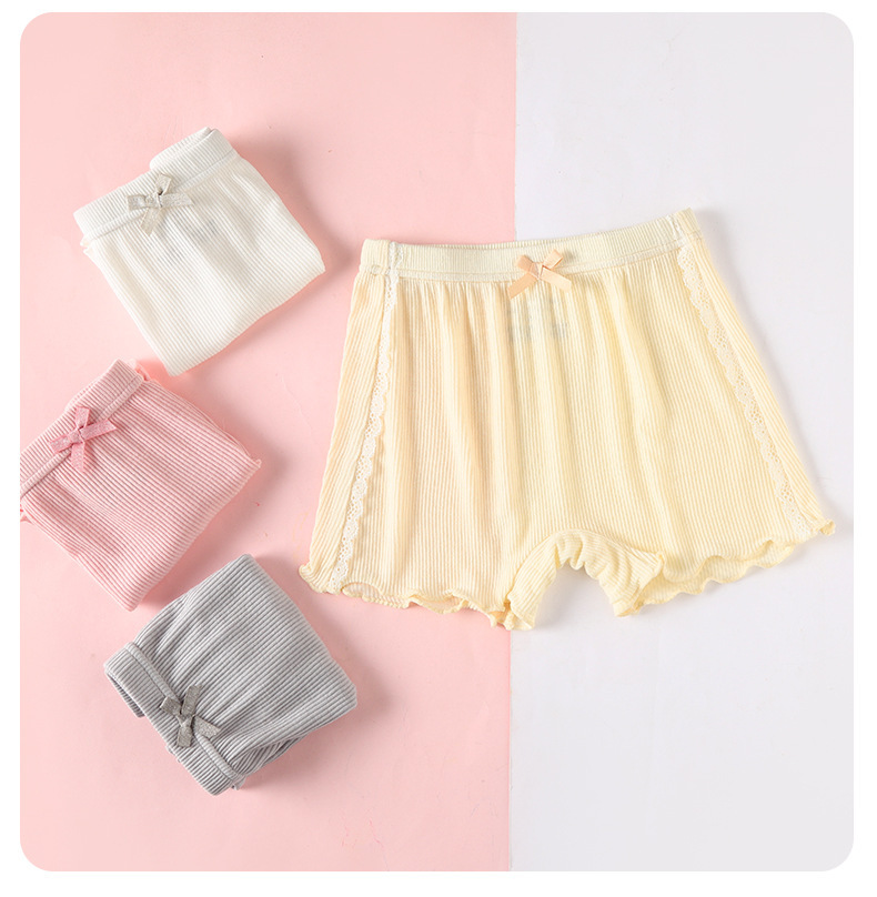 2025 여름 어린이 모달 스트레치 3점 레깅스 중소형 소녀용 리본 레이스 캔디 컬러 반바지
