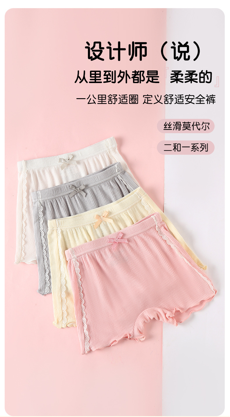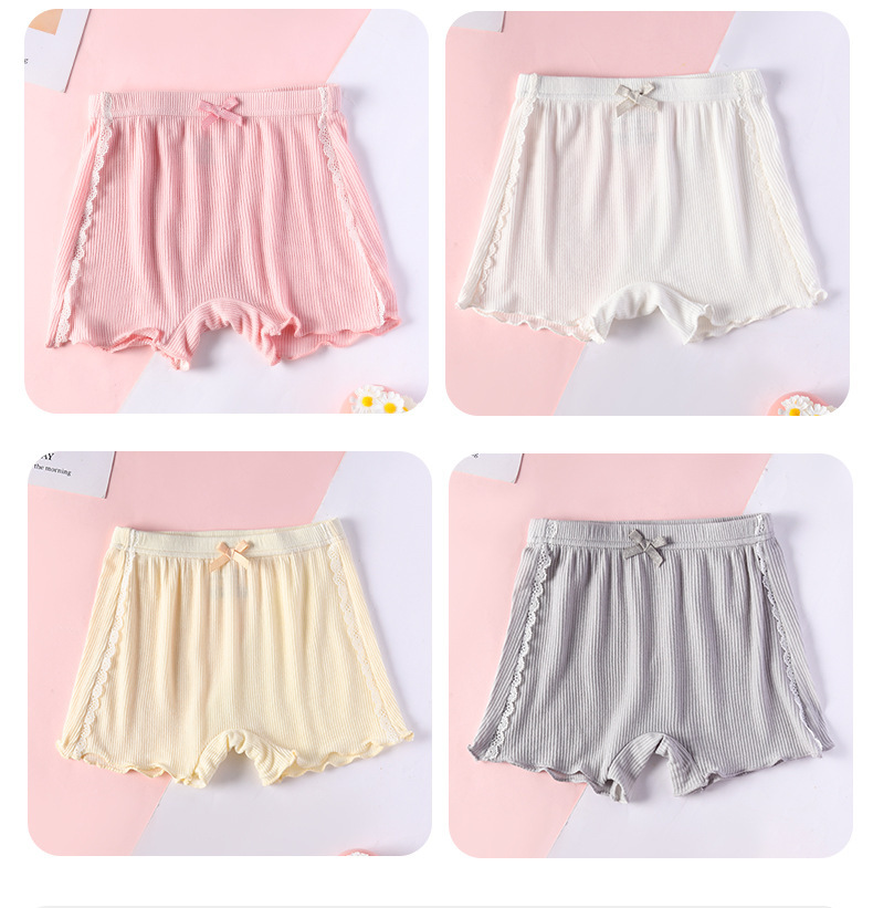 2025 여름 어린이 모달 스트레치 3점 레깅스 중소형 소녀용 리본 레이스 캔디 컬러 반바지스토어 가기