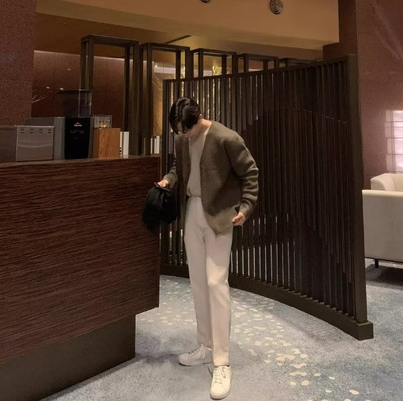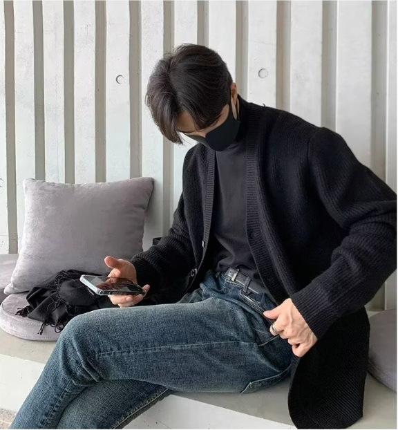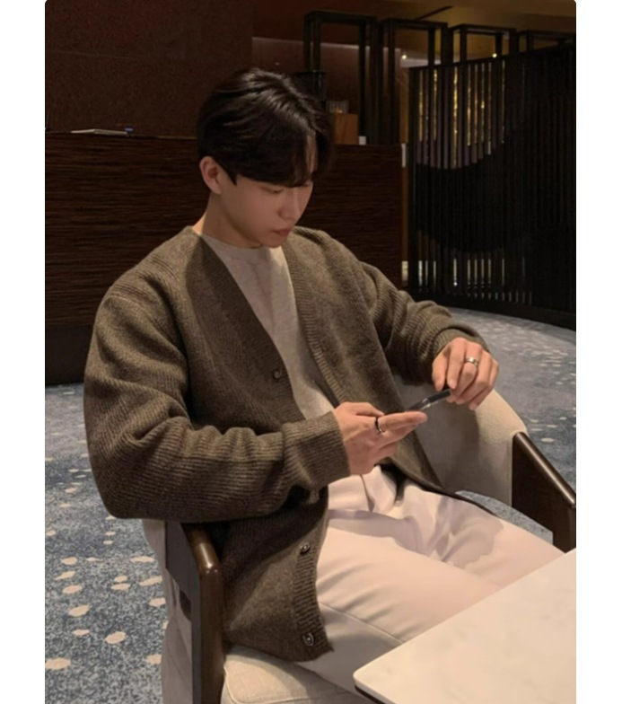 봄과 가을 패션 카디건 스웨터 한국 스타일 트렌디 스웨터 캐주얼 루즈 젊은 남성 게으른 간단한 재킷 잘 생긴스토어 가기
