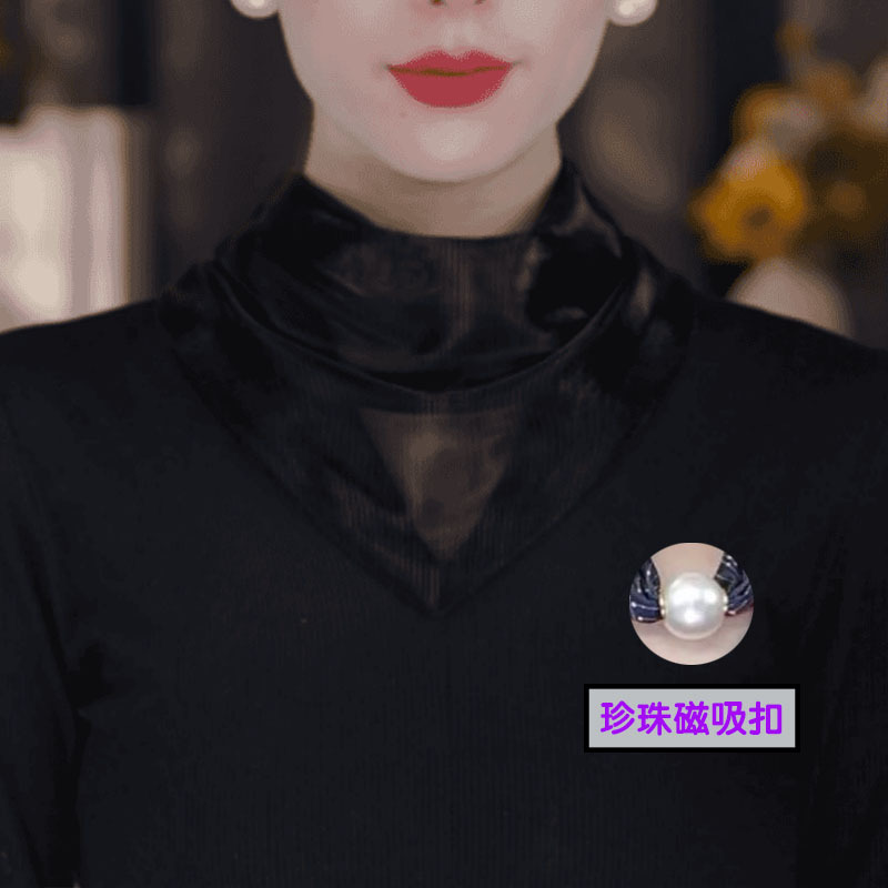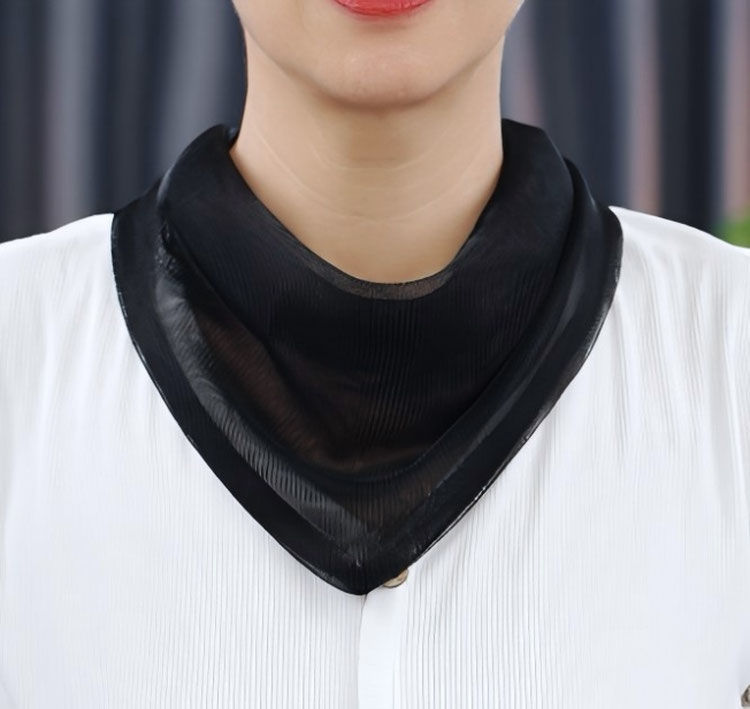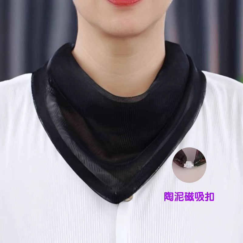 • 클래식 블랙 컬러풀 트라이앵글 스카프 (진주 자석 버클)