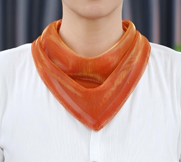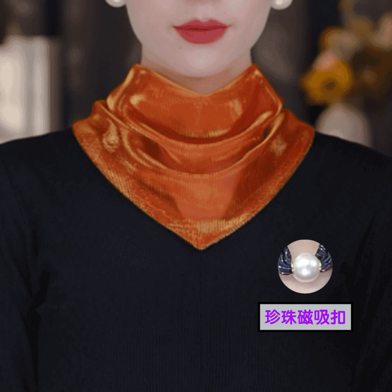 • 오렌지색의 컬러풀한 트라이앵글 스카프(진주 자석 버클)