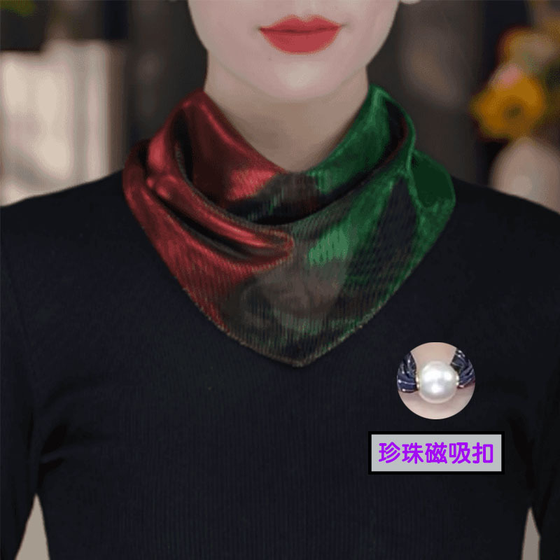 • 컬러풀한 그린 컬러풀한 트라이앵글 스카프 (진주 자석 버클)