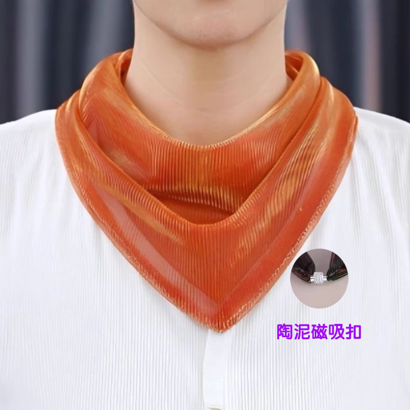 • 오렌지색의 컬러풀한 삼각 스카프(점토 자석 버클)