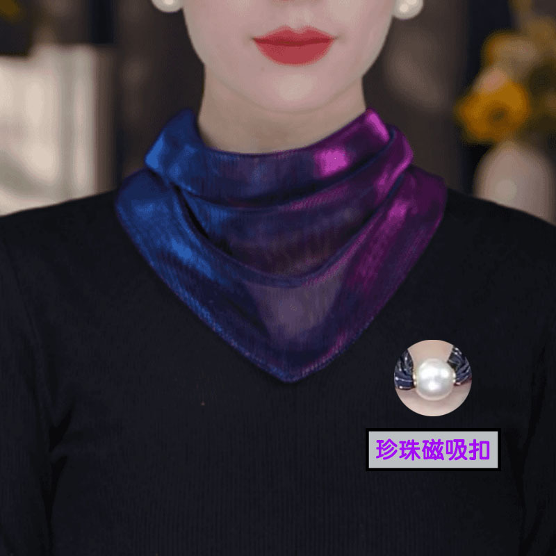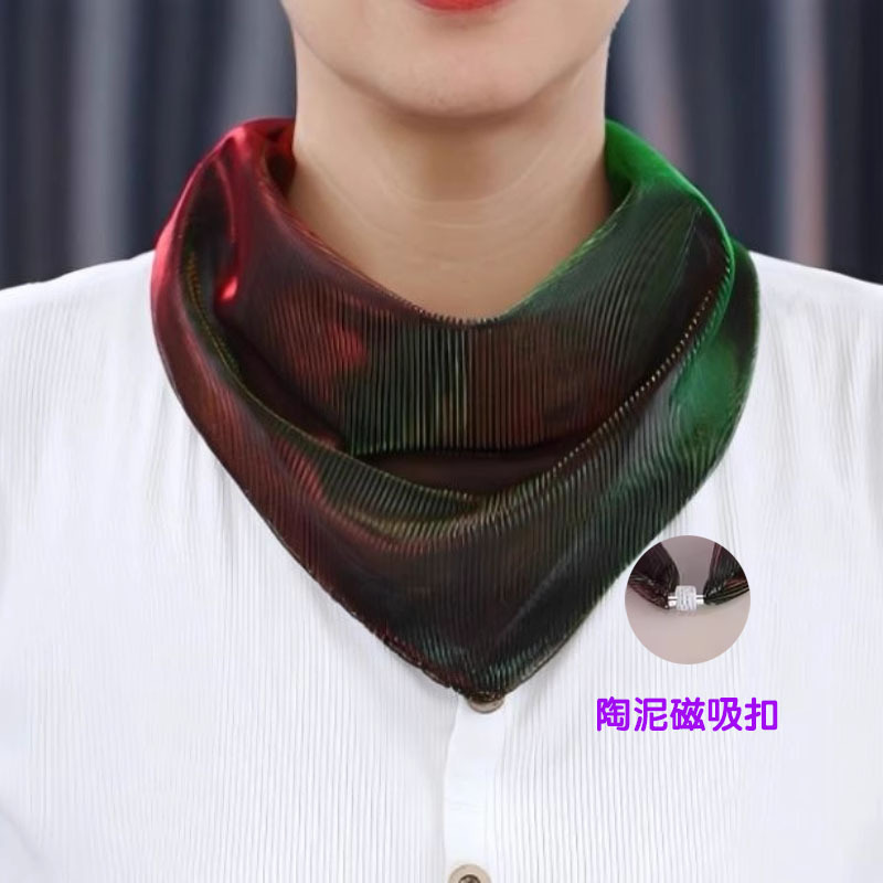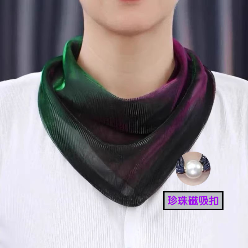 • 퍼플 그린 컬러풀 트라이앵글 스카프 (진주 자석 버클)