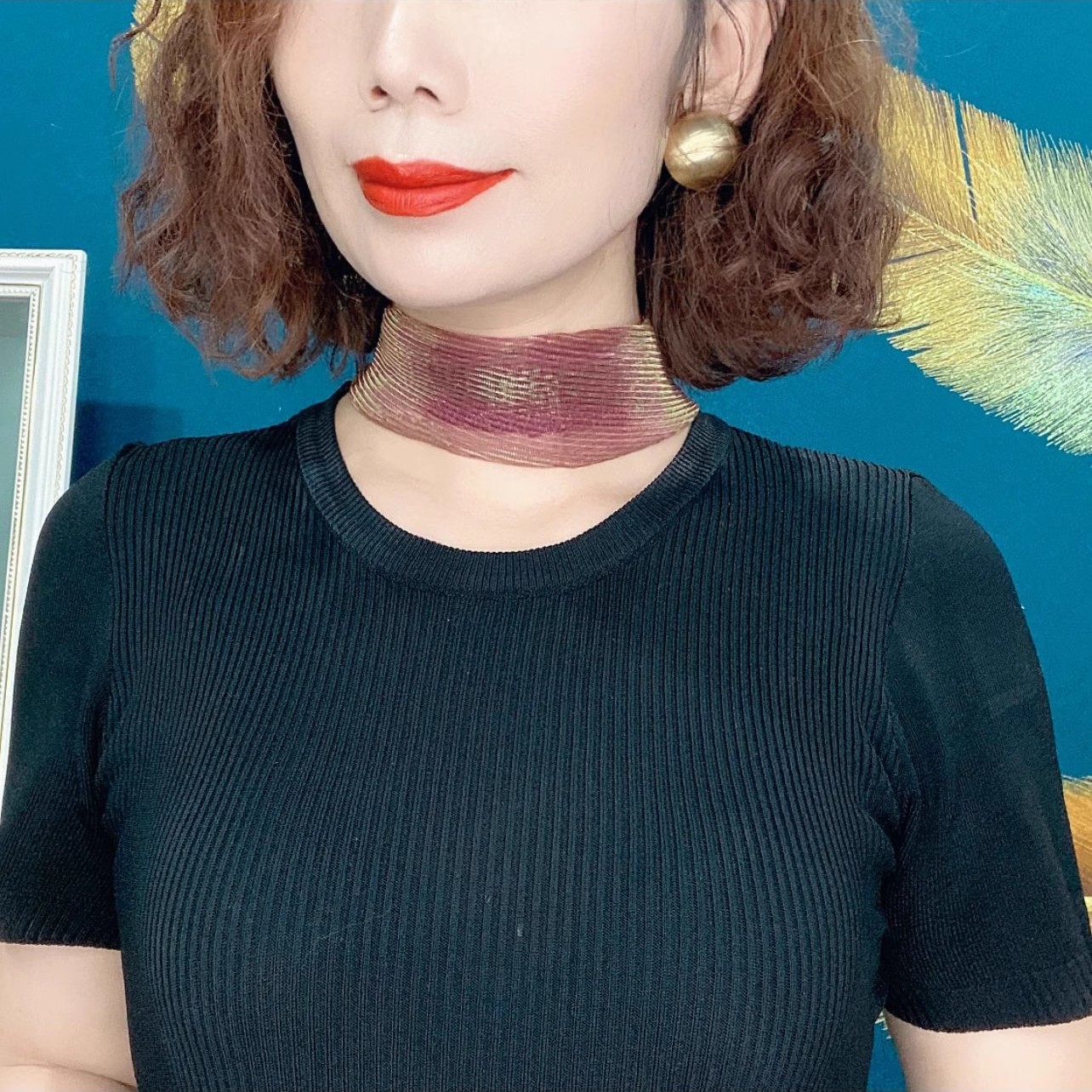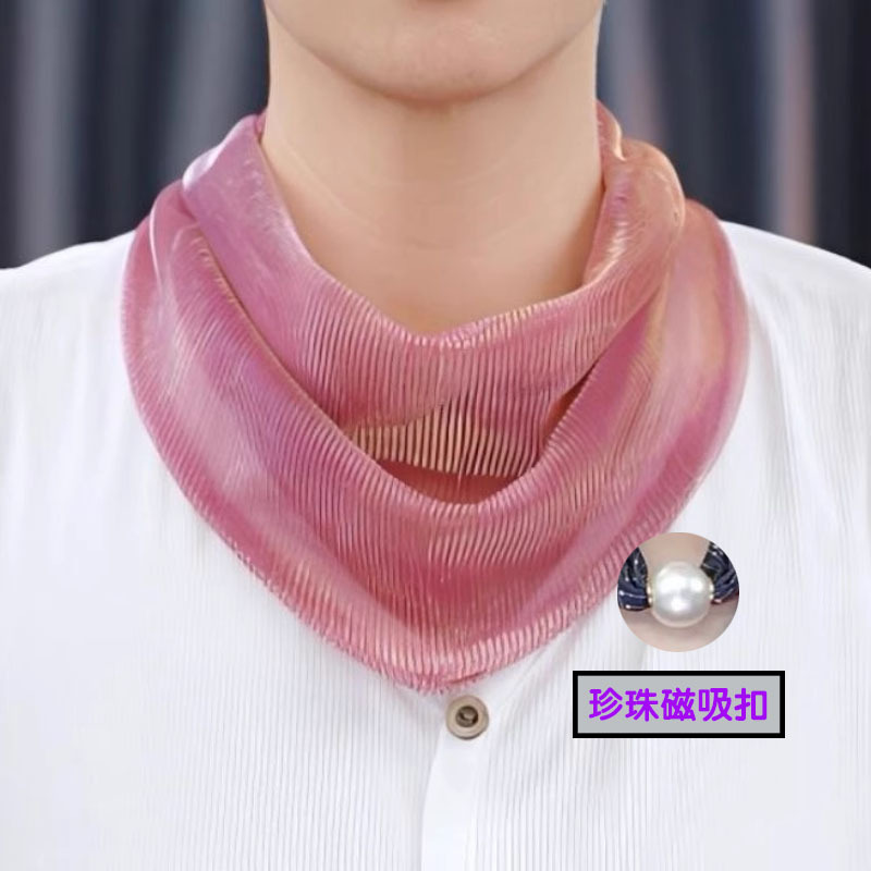• 가죽 핑크 컬러풀 트라이앵글 스카프 (진주 자석 버클)