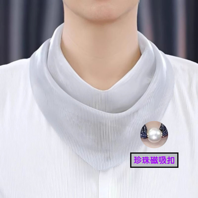 • 고급 그레이 컬러풀 트라이앵글 스카프 (진주 자석 버클)