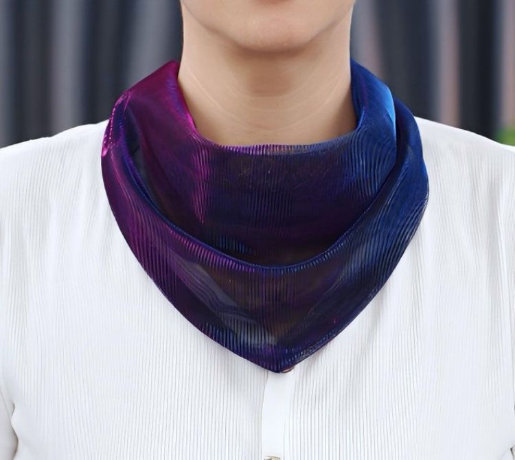• 퍼플 블루 컬러풀 트라이앵글 스카프 (진주 자석 버클)