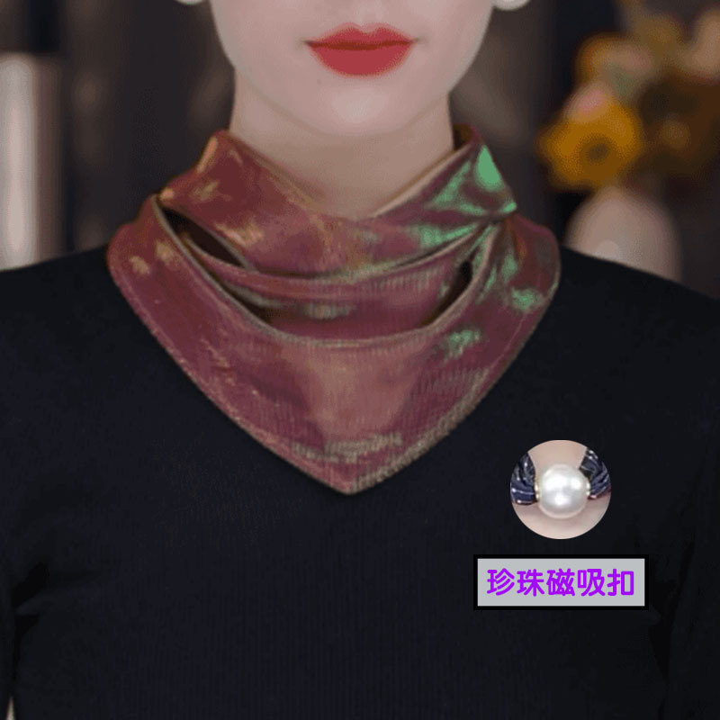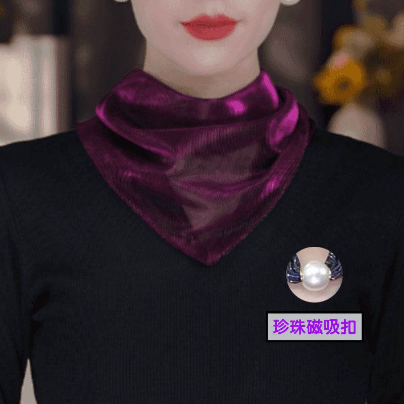 • 로즈 퍼플 컬러풀 트라이앵글 스카프 (진주 자석 버클)