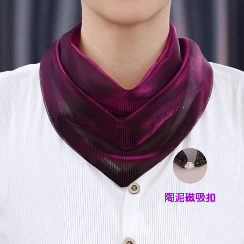 • 로즈 퍼플 컬러풀 트라이앵글 스카프 (클레이 마그네틱 버클)