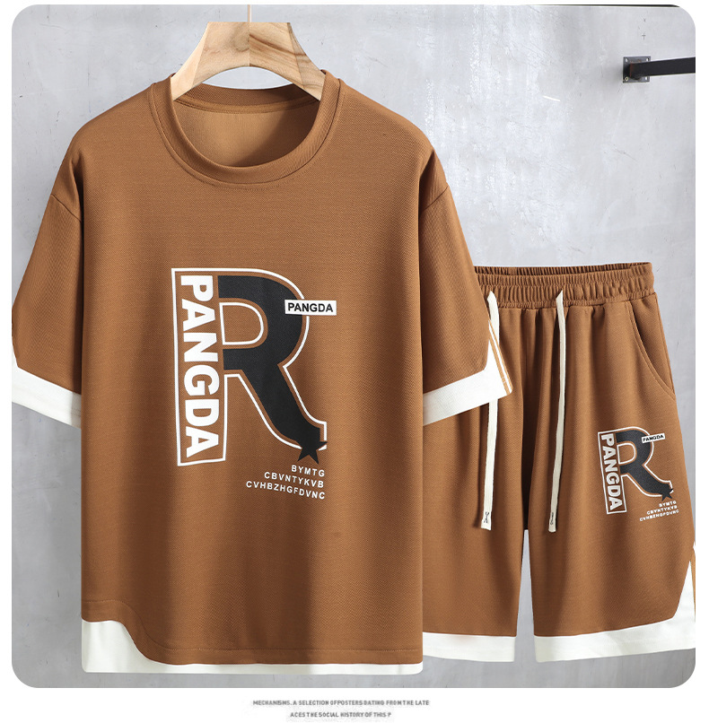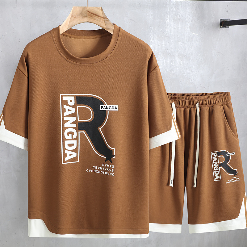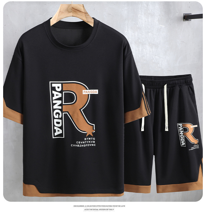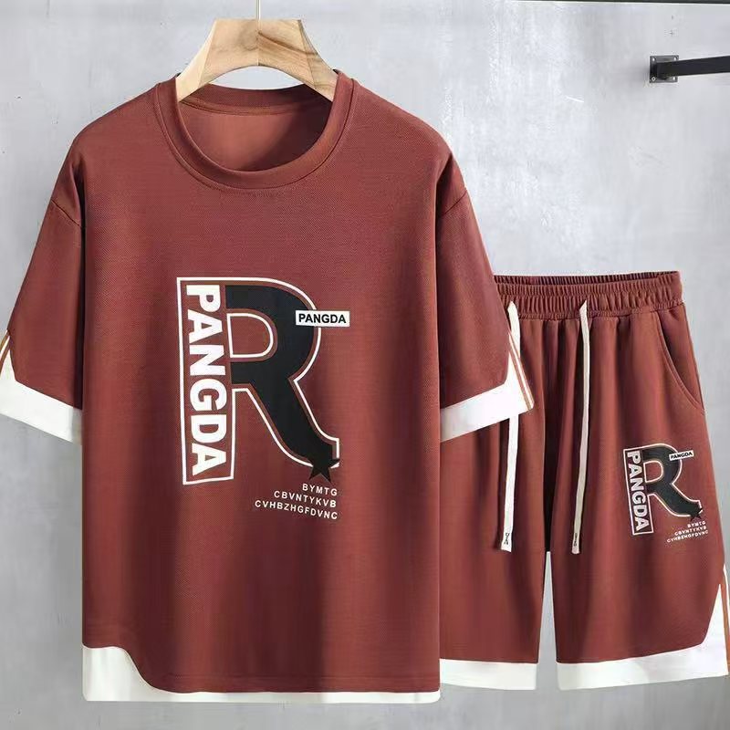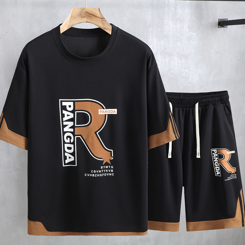 여름 플러스 사이즈 남자 반팔 반바지 세트 플러스 뚱뚱한 느슨한 캐주얼 탑 하프 바지 165.00kg