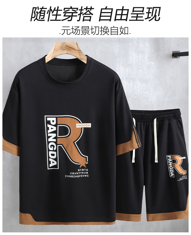 여름 플러스 사이즈 남자 반팔 반바지 세트 플러스 뚱뚱한 느슨한 캐주얼 탑 하프 바지 165.00kg스토어 가기
