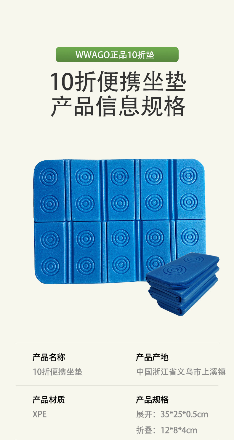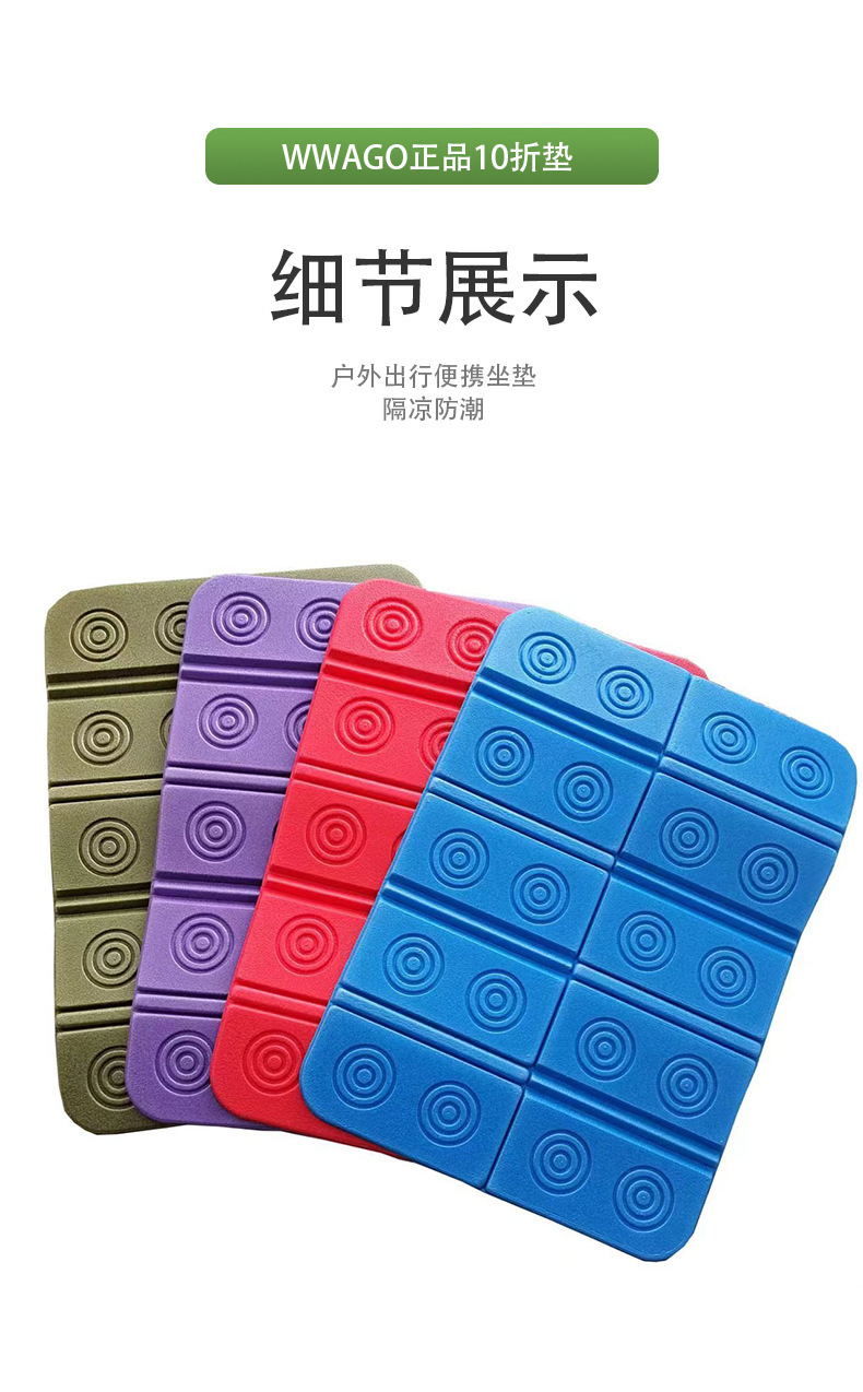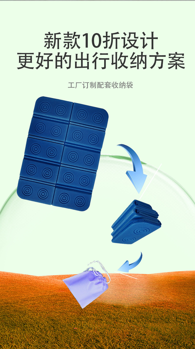 小坐垫采用的材料是xpe新料,折叠起来尺寸更小,携带方便。工厂有配套收纳袋(无纺布收纳袋售价为0.6元/个,小熊收纳袋售价0.2元/个).量大客户可联系客服询价。