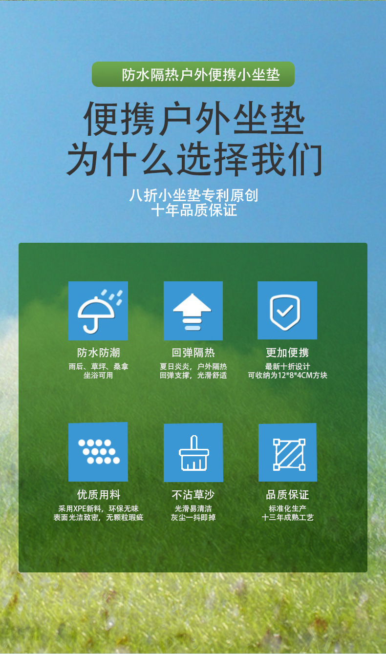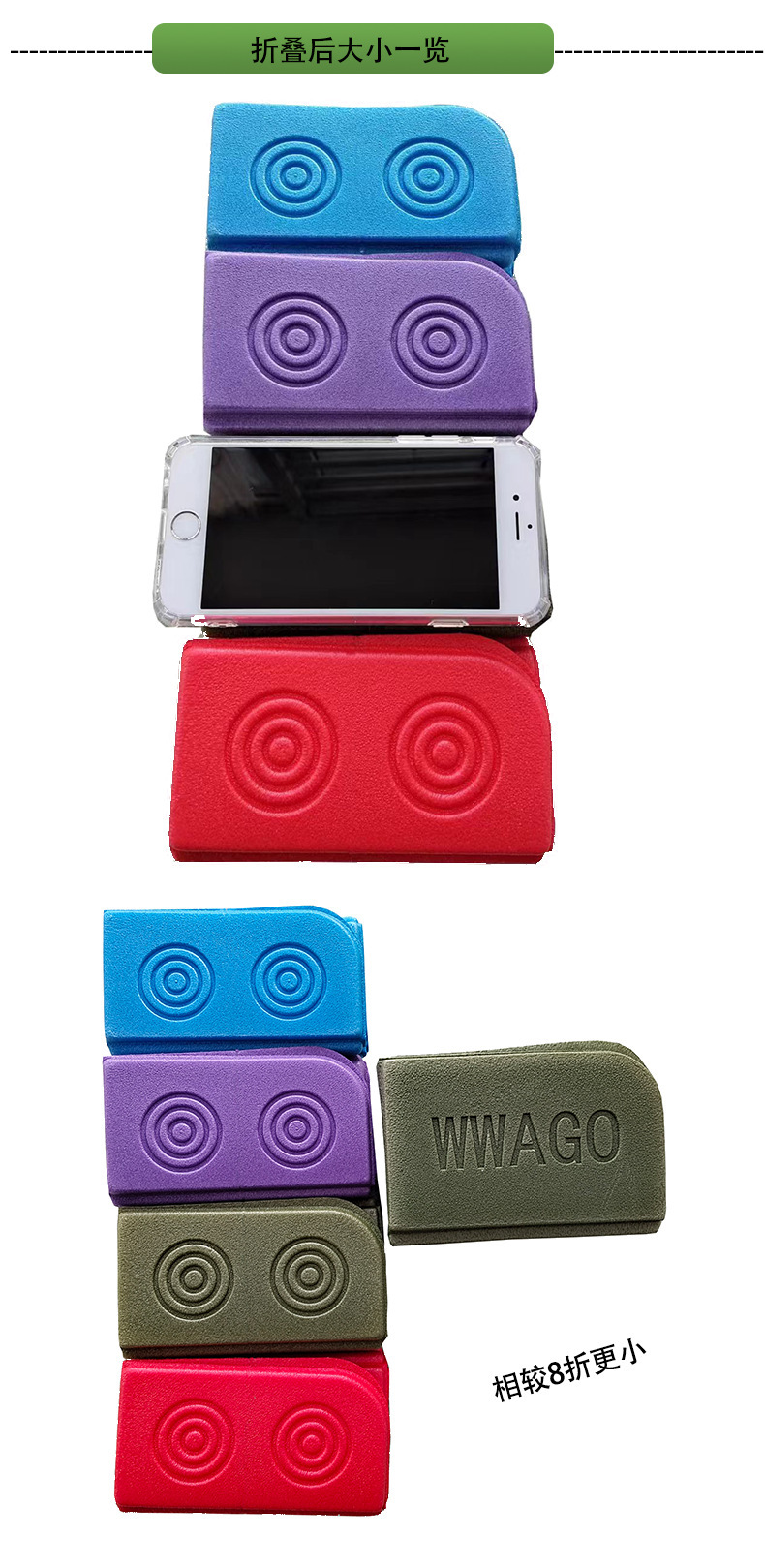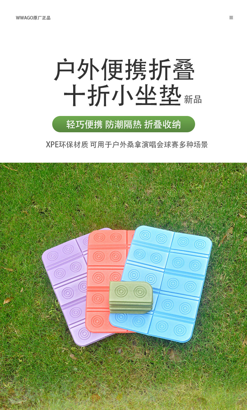 小坐垫采用的材料是xpe新料,折叠起来尺寸更小,携带方便。工厂有配套收纳袋(无纺布收纳袋售价为0.6元/个,小熊收纳袋售价0.2元/个).量大客户可联系客服询价。