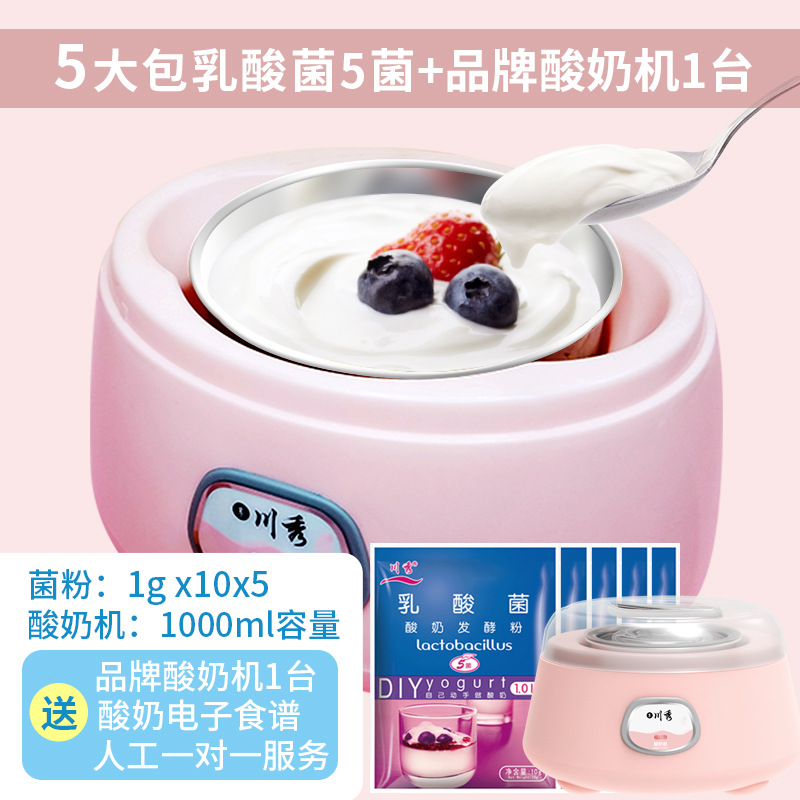 • 무료 요구르트 기계 : 5가지 박테리아가 들어있는 대형 패키지 5개 + 304 브랜드 요구르트 기계 [1년 교체 및 수리]