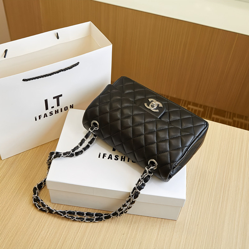 새로운 스타일 샤넬 스타일 CF 캐비아 여성 가방 마름모꼴 작은 광장 검은 토러스 체인 어깨 크로스 바디 중간 가죽 가방스토어 가기