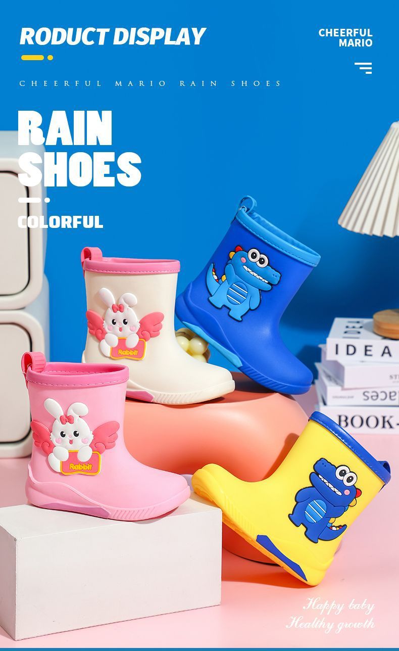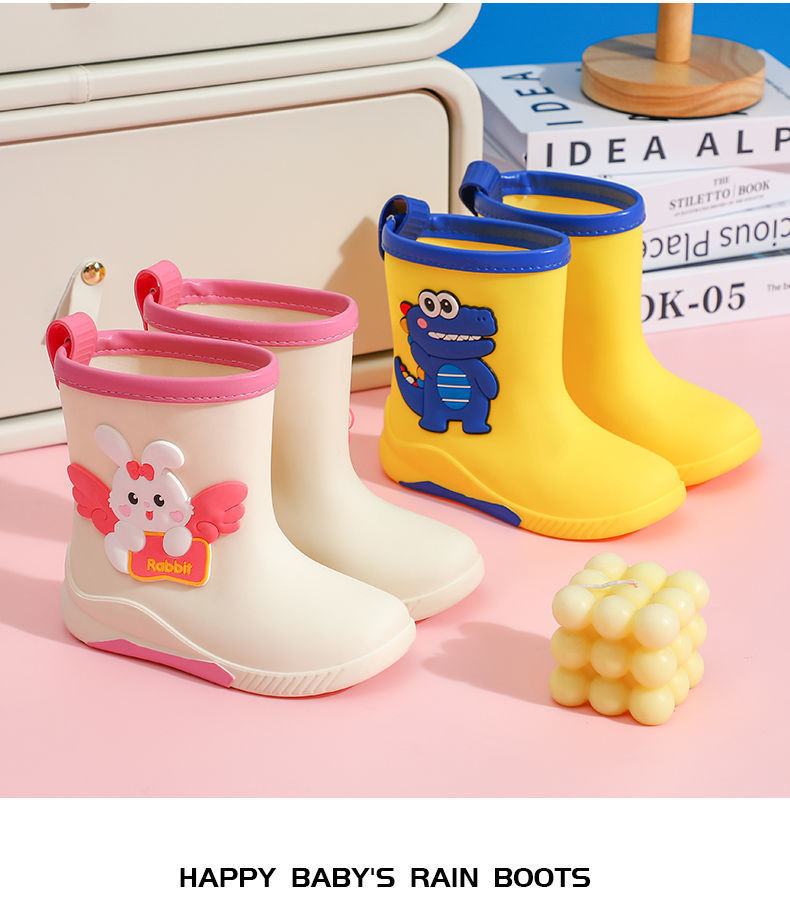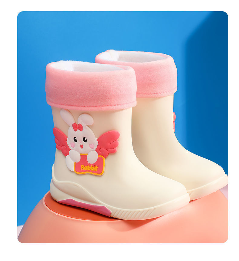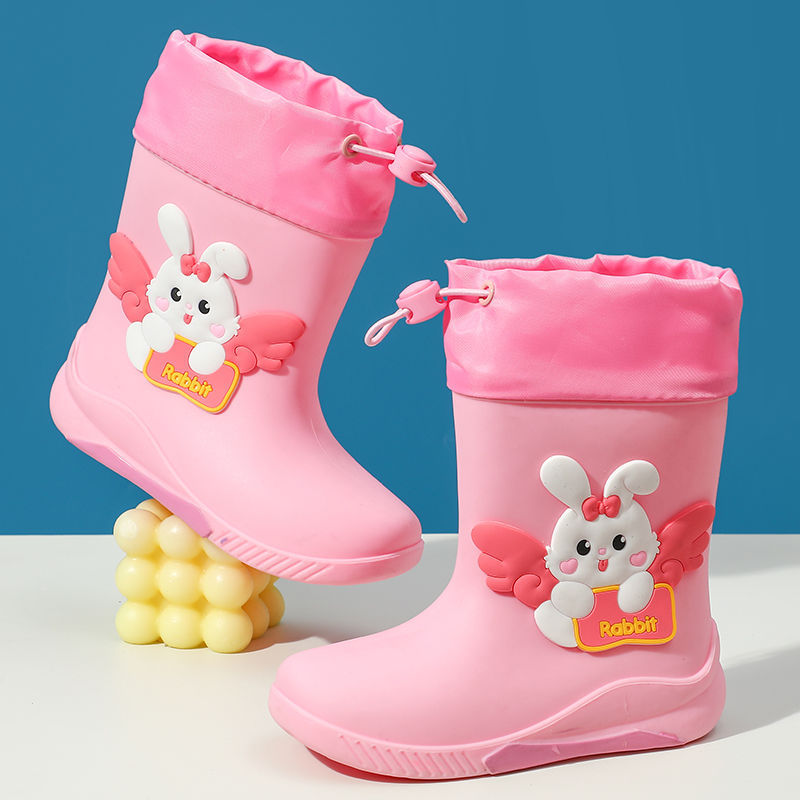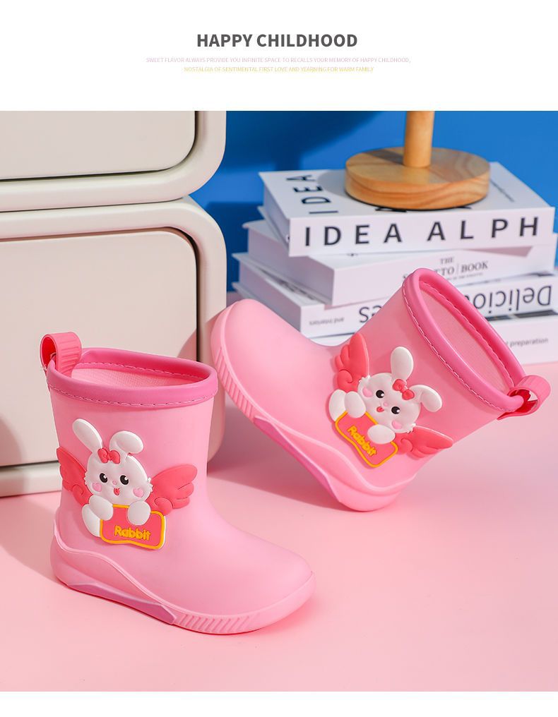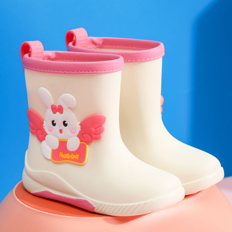 어린이 중간 길이 방수 미끄럼 방지 장화, 중소형 학생용 고무신, 아기 귀여운 토끼 만화 워터 부츠, 가죽 배치스토어 가기
