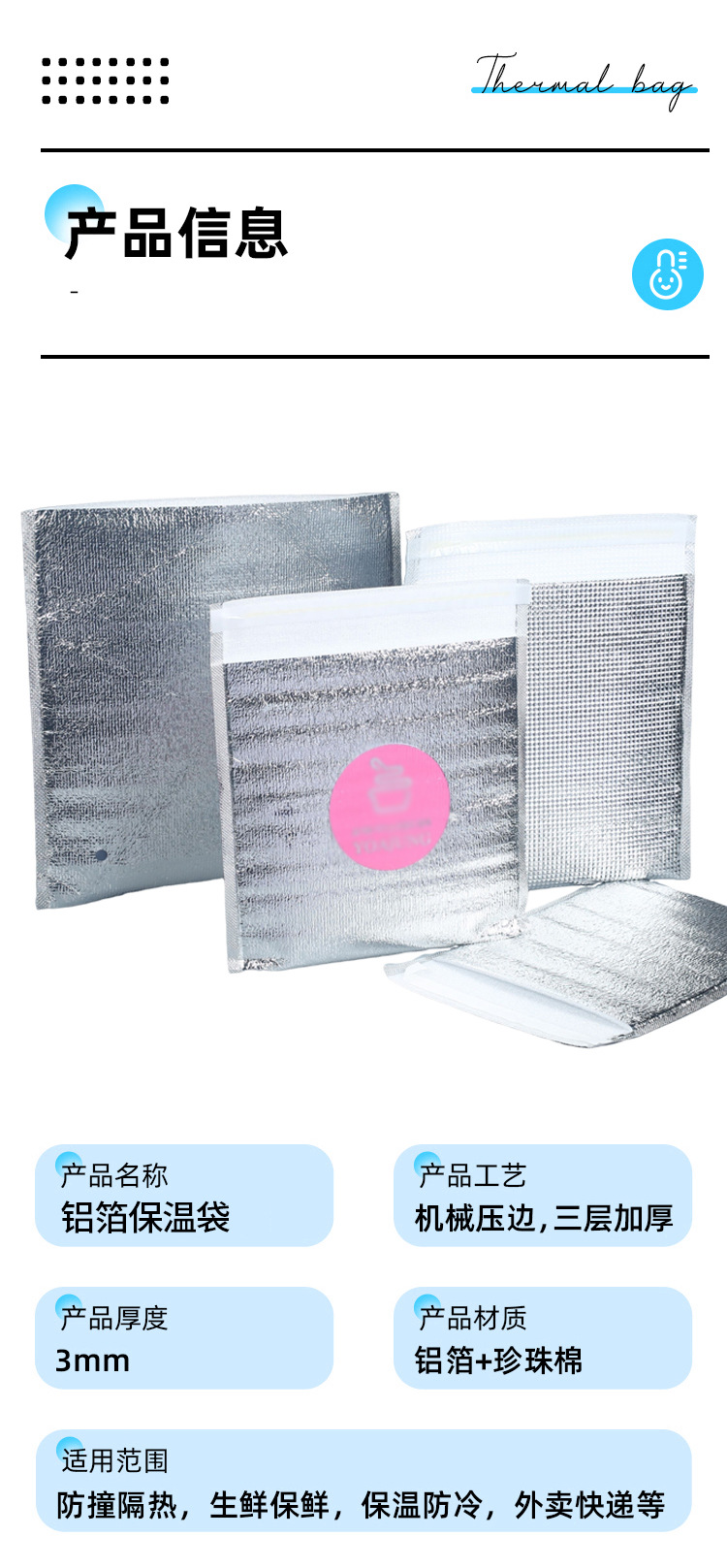 재고 테이크 아웃 단열 가방 일회용 알루미늄 호일 두꺼운 맞춤형 바베큐 신선한 단열재 차가운 가방 접착제 3 차원 가방