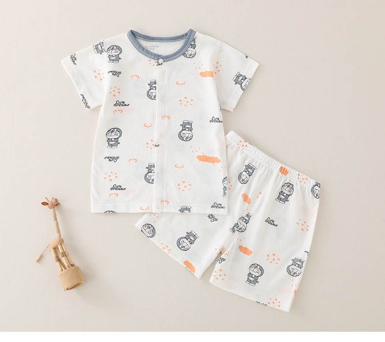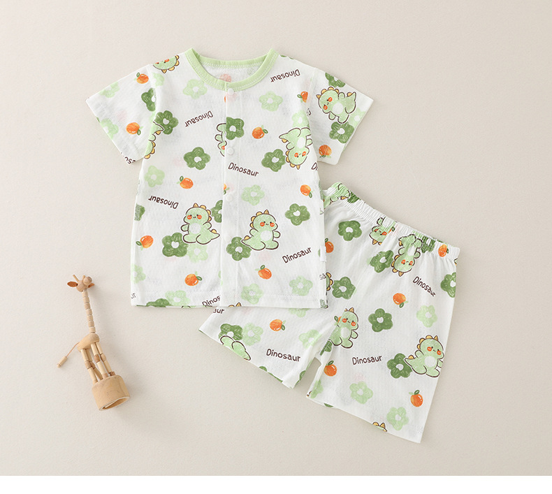 아기의 반팔 세트 아기의 티셔츠 얇은 통기성 퓨어 코튼 본리스 유아 스플릿 반바지 소년 소녀 여름 착용