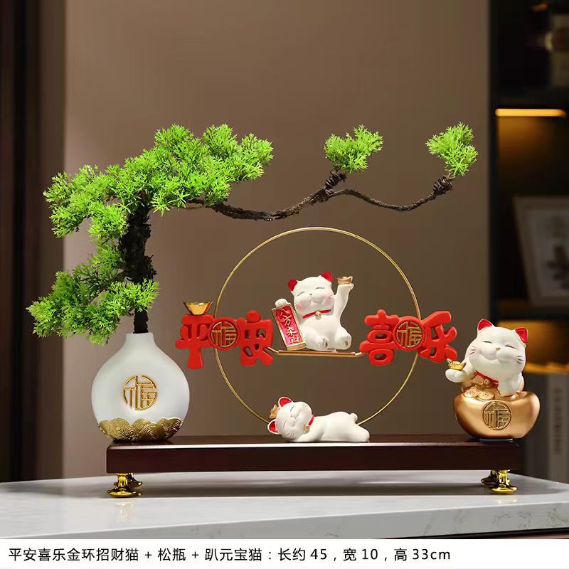 • 평화, 기쁨, 행운의 고양이 + 환영 소나무 + 위안바오 고양이