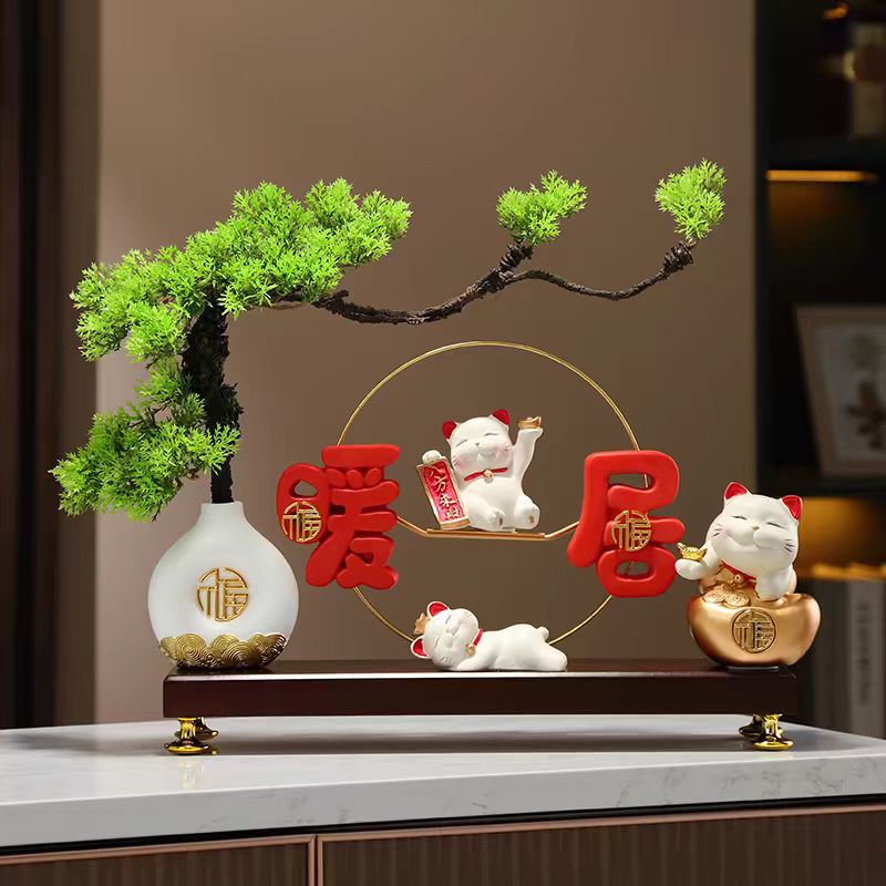 • 따뜻한 집 행운의 고양이 + 환영 소나무 + 위안바오 고양이