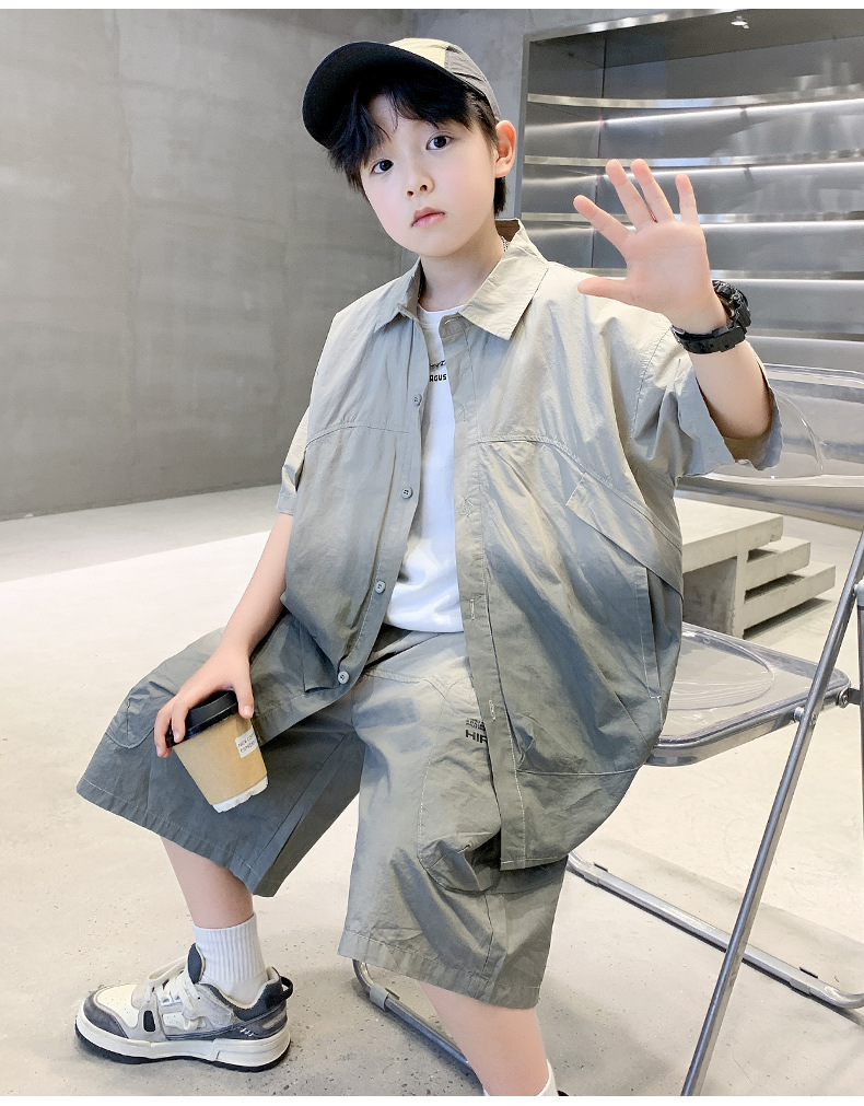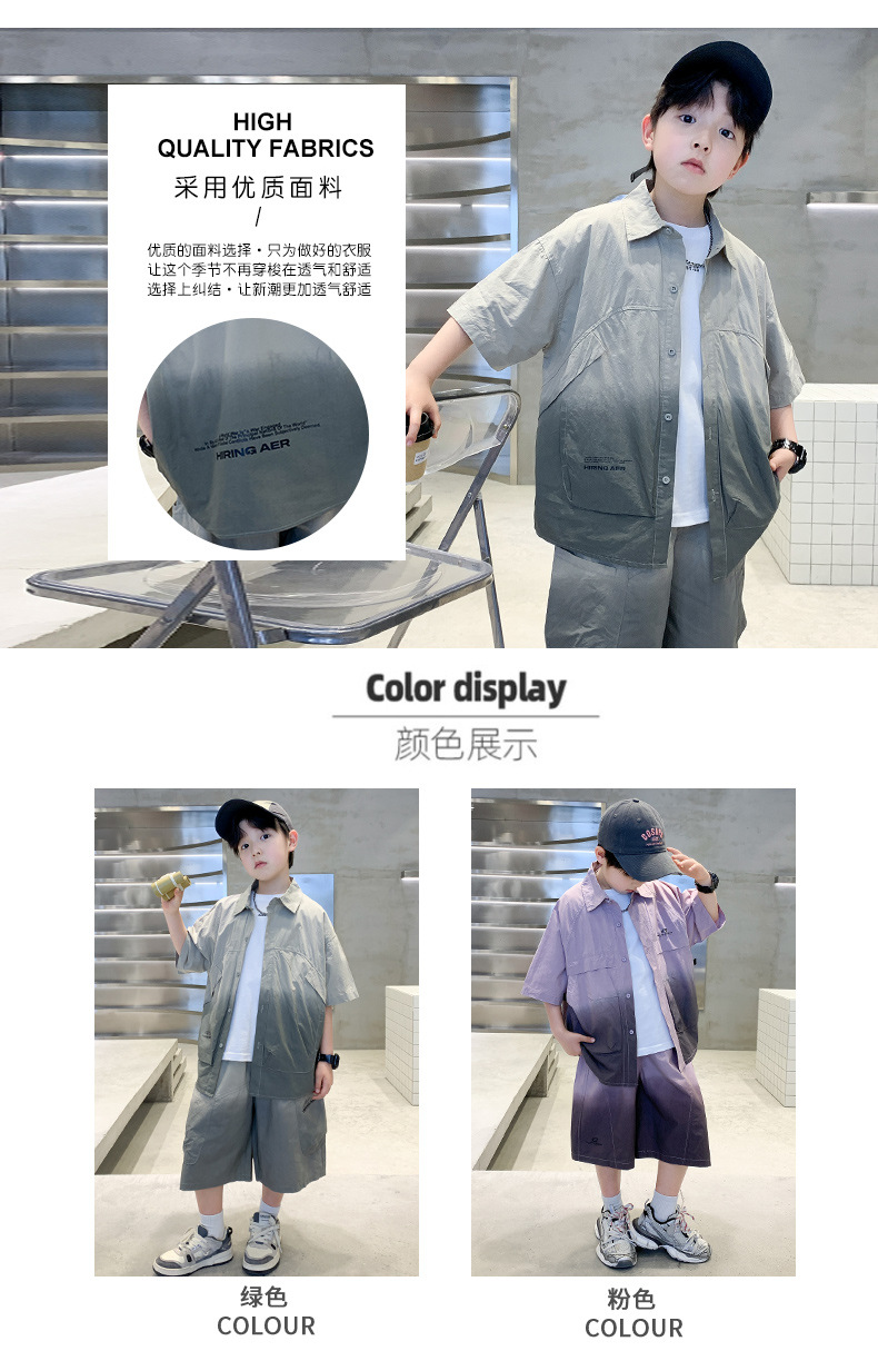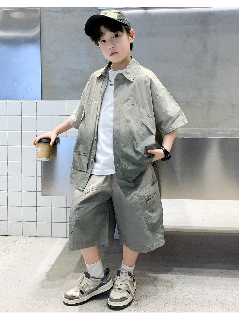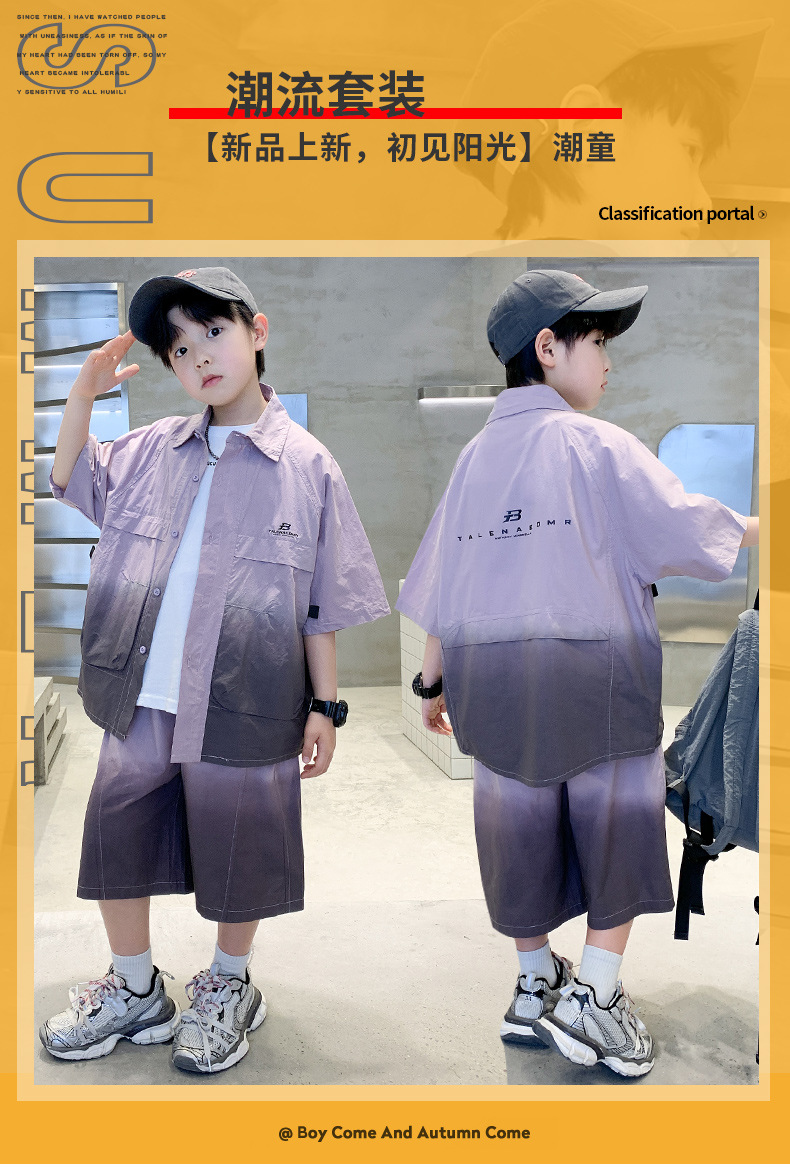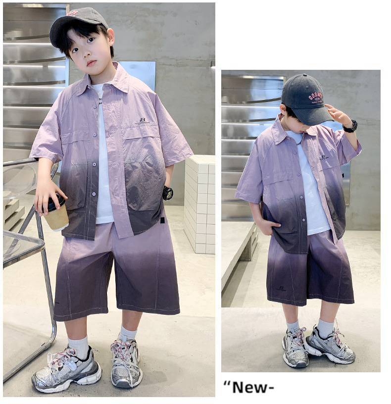 소년 여름 세트 러피 잘 생긴 여름 셔츠 짧은 소매 반바지 2025 새로운 큰 어린이 서양식 그라데이션 아동복스토어 가기